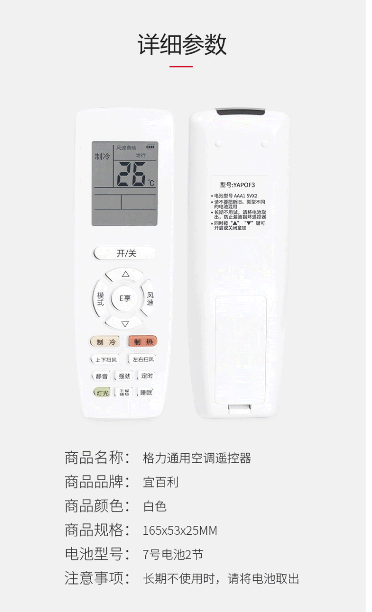 商品名称:空调遥控器 适用于格力空调遥控器通用版