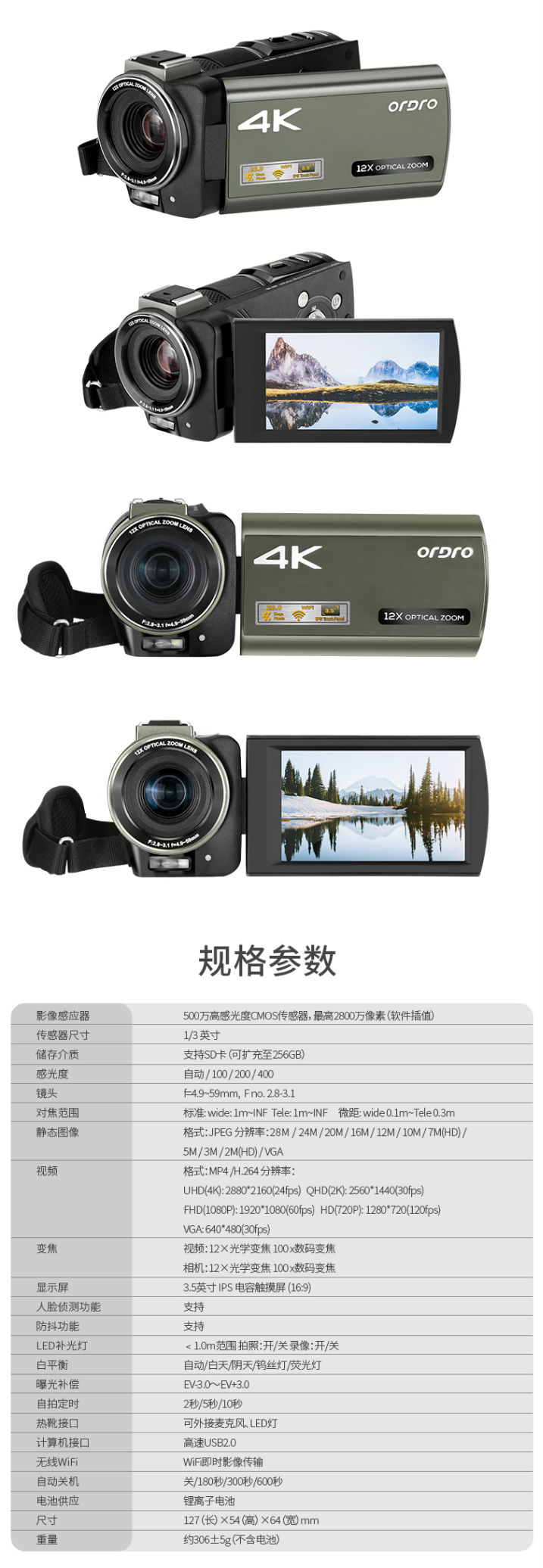 欧达(ORDRO)AX60光学变焦摄像机4K直播录像机超清摄影机(含电池及充电器)