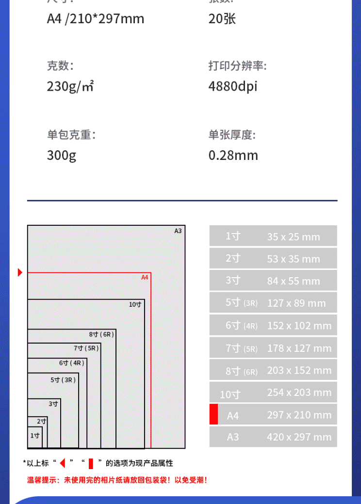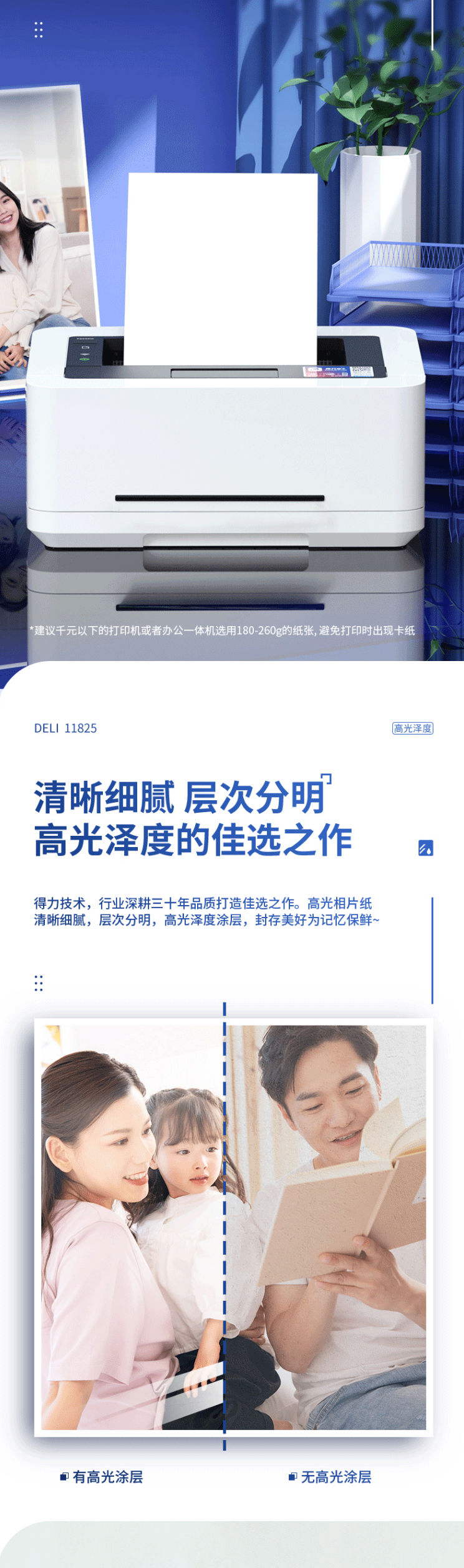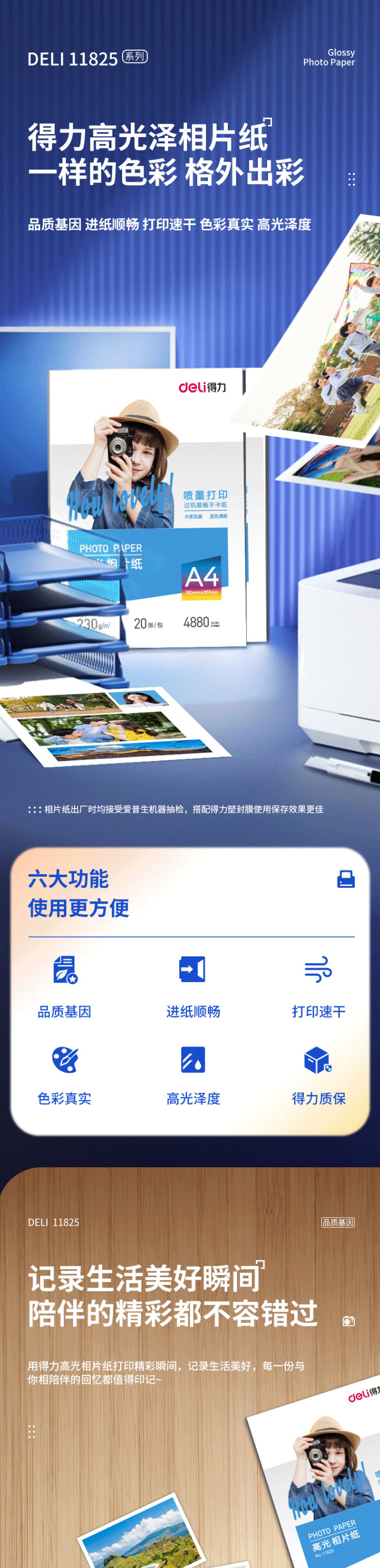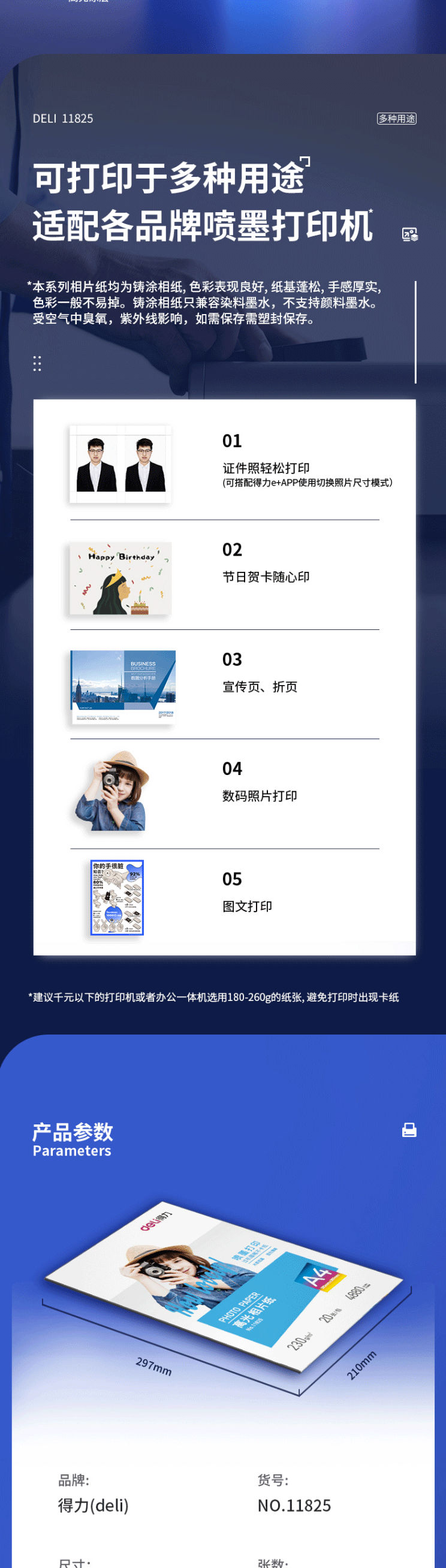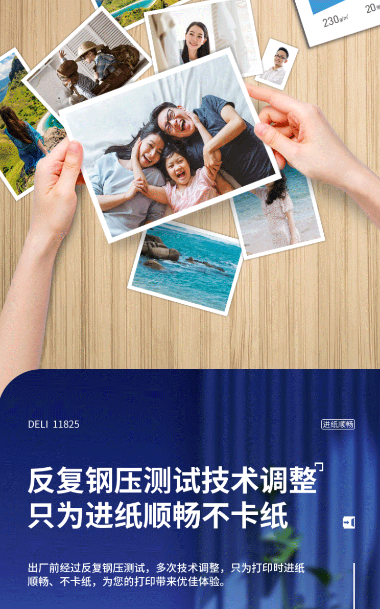 商品名称:得力(deli)A4 230g高光面照片纸 相片打印纸 20张/包 11825