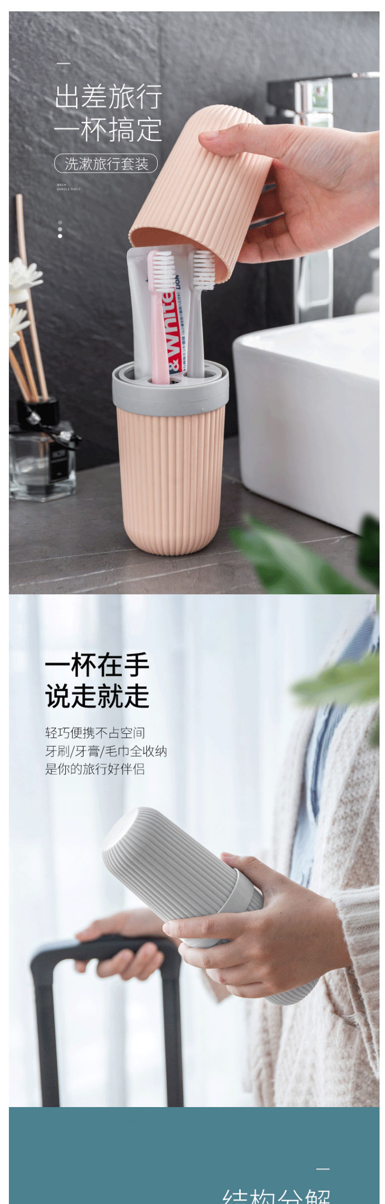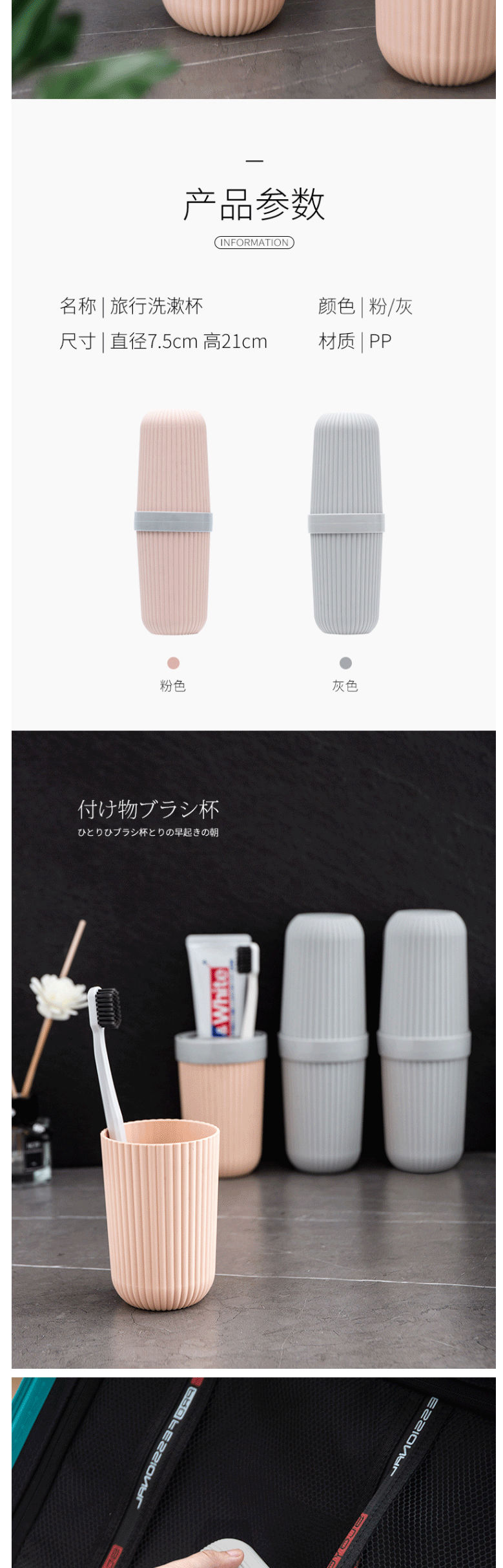 商品名称:洁丽雅(Grace)旅行洗漱杯 牙缸牙具盒可折2个刷牙杯旅行套装漱口杯牙刷牙膏收纳盒空杯 简约灰