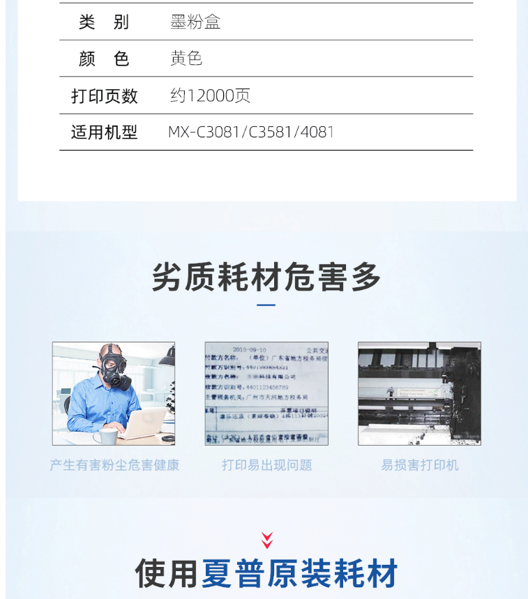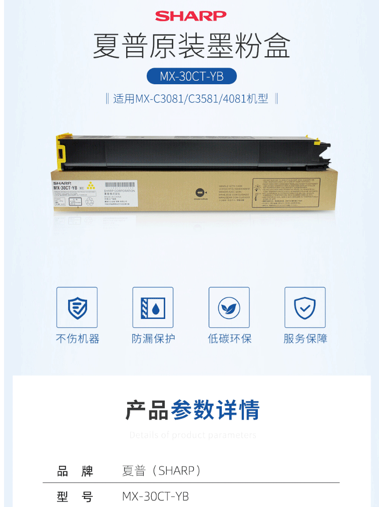 商品名称:夏普(SHARP)MX-30CT YB 原装黄色墨粉盒(适用MX-C3081/C3581/4081机型)