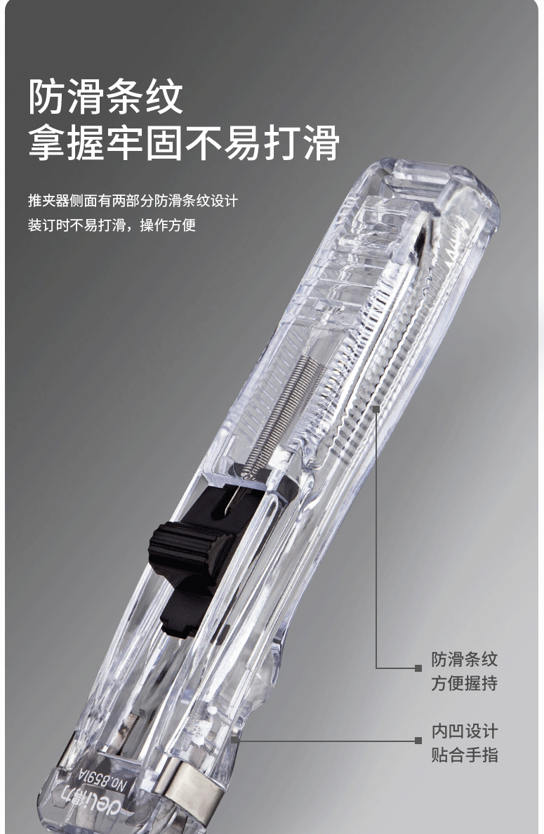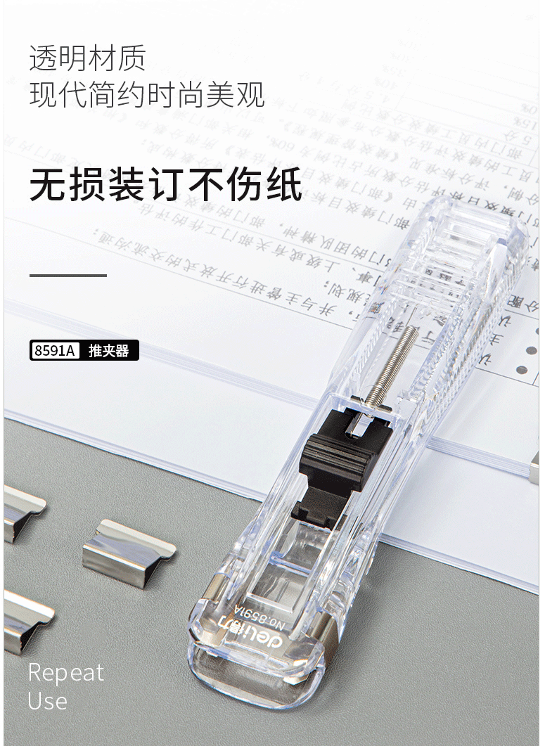 得力(deli)办公装订推夹器 透明白 8591A