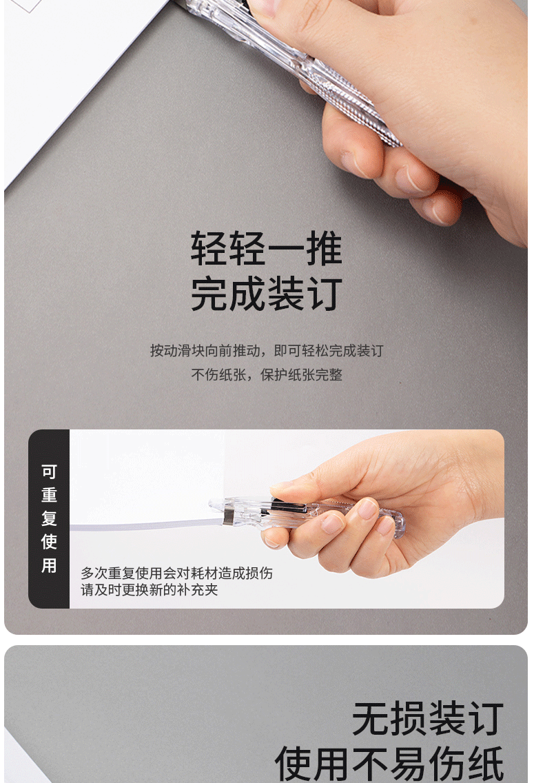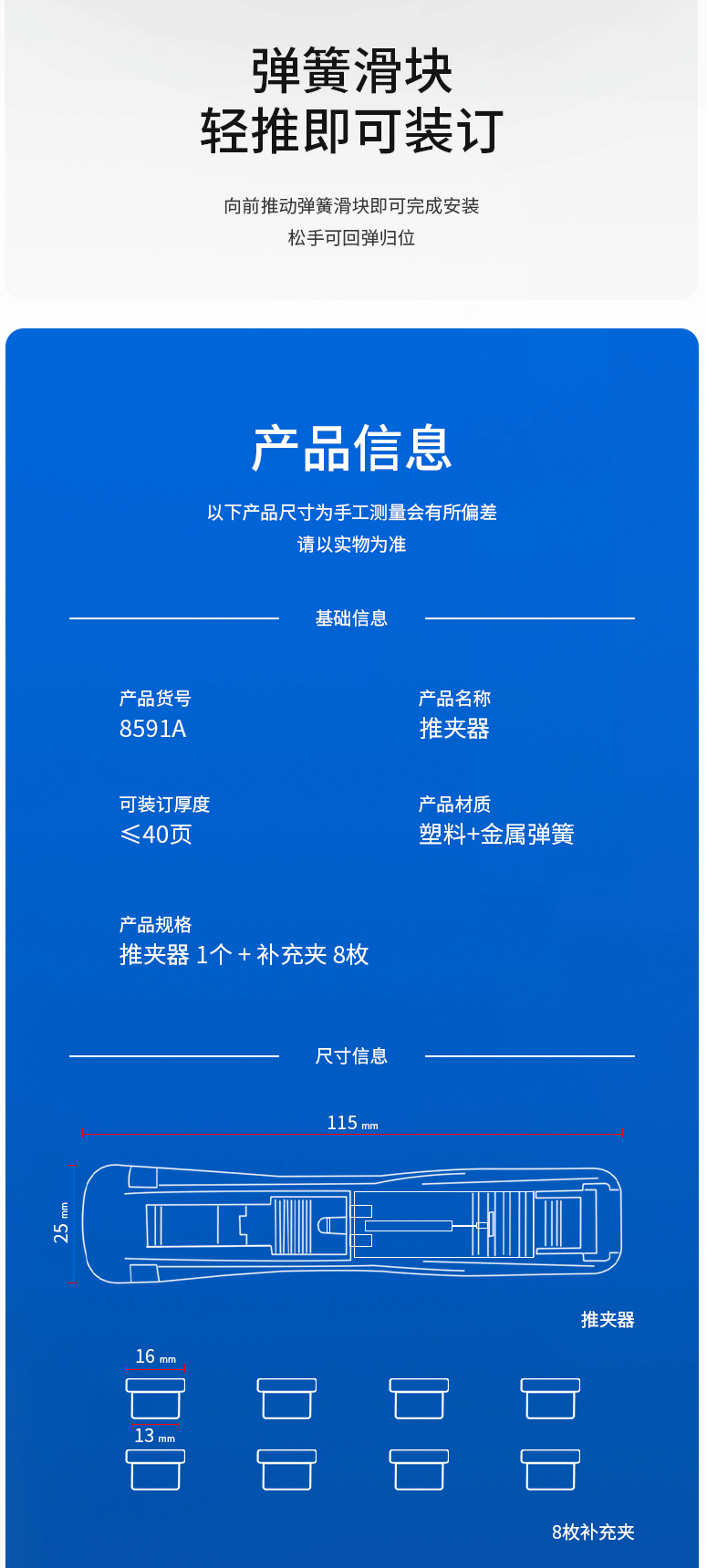 商品名称:得力(deli)办公装订推夹器 透明白 8591A
