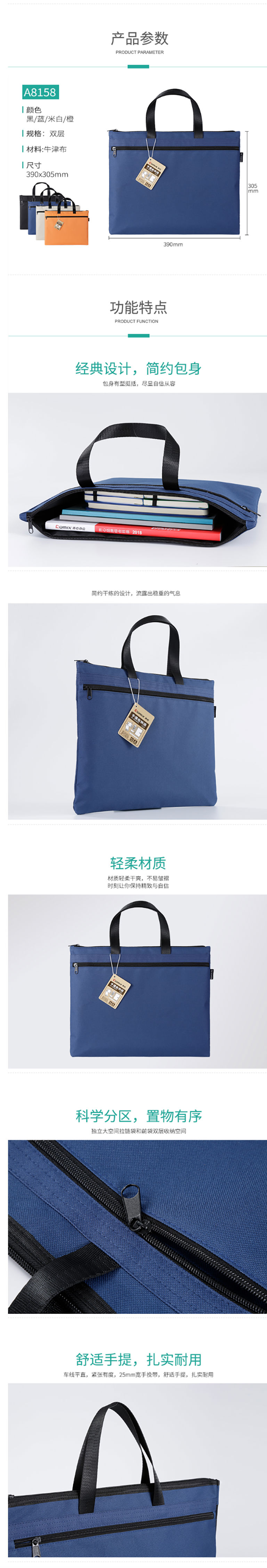 商品名称:齐心 A8158 双层事务包/文件袋公文包/手提电脑包/会议包 蓝
