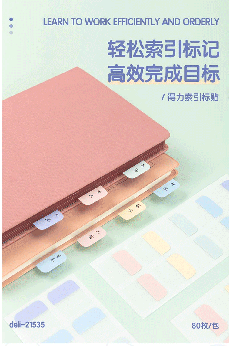 得力(deli)便利贴索引贴标签贴纸 彩色便利留言纸 小号-8张160枚/包 21536