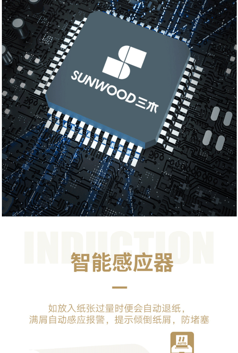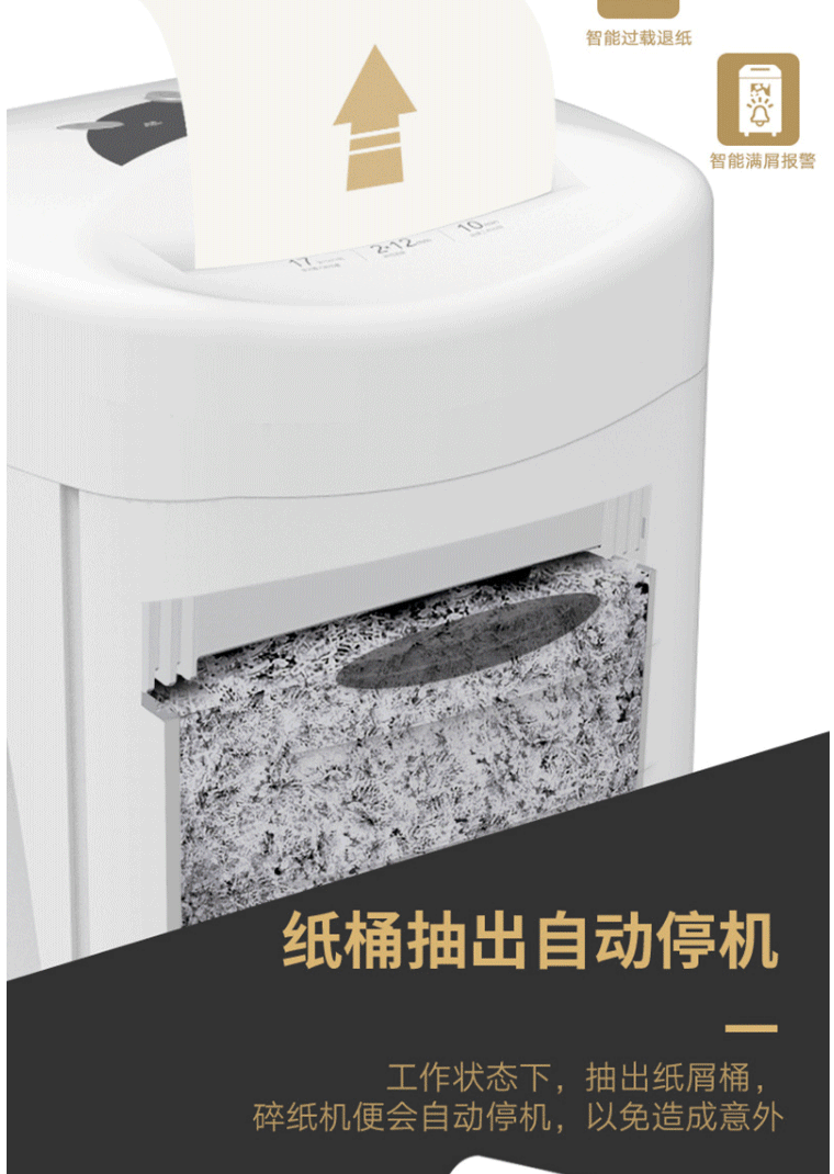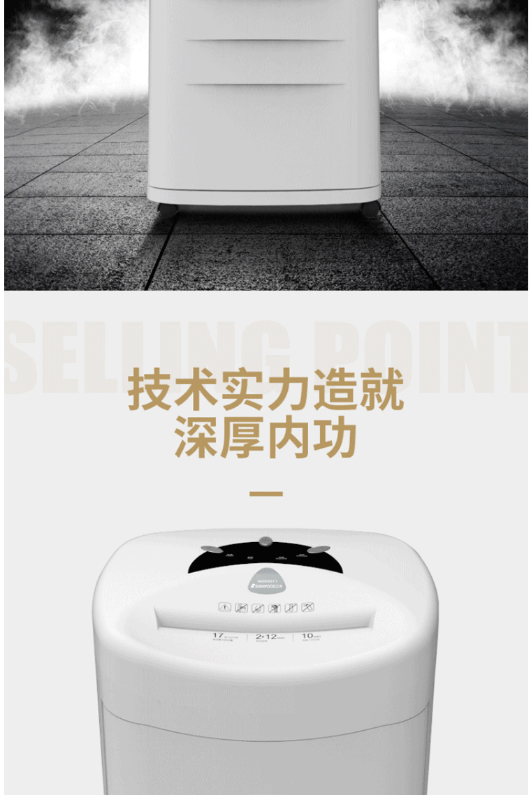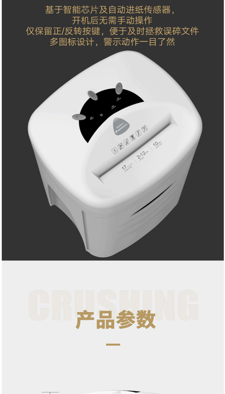 商品名称:三木(SUNWOOD)5级保密办公商用碎纸机 MSD9511(单次17张 持续10分钟 34L 可碎纸,光盘,卡,回形针、订书针)