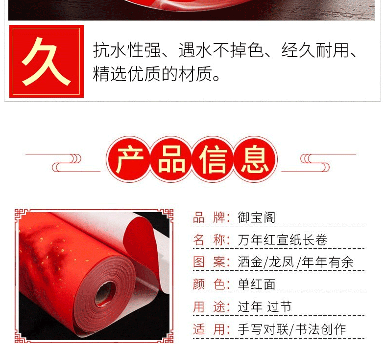 商品名称:万年红长卷对联纸 宣纸 手写春联 空白春联 17cm宽*20米
