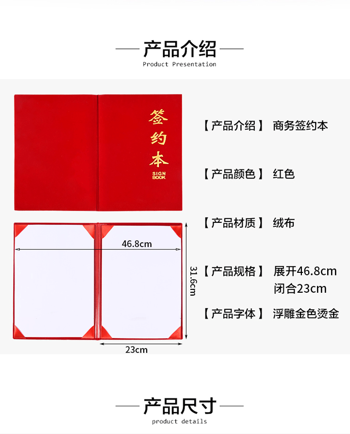 商品名称:A4绒面商务签约本签到本 /合同夹/签约夹/合同本 红色