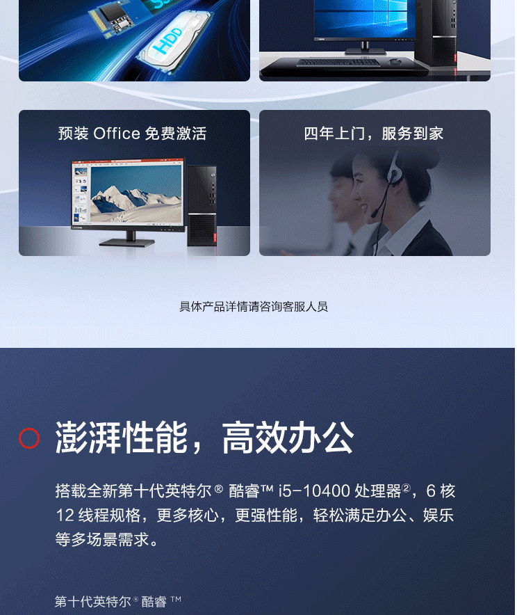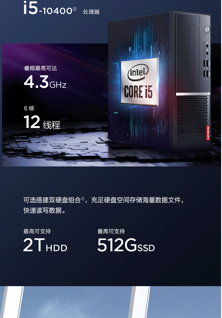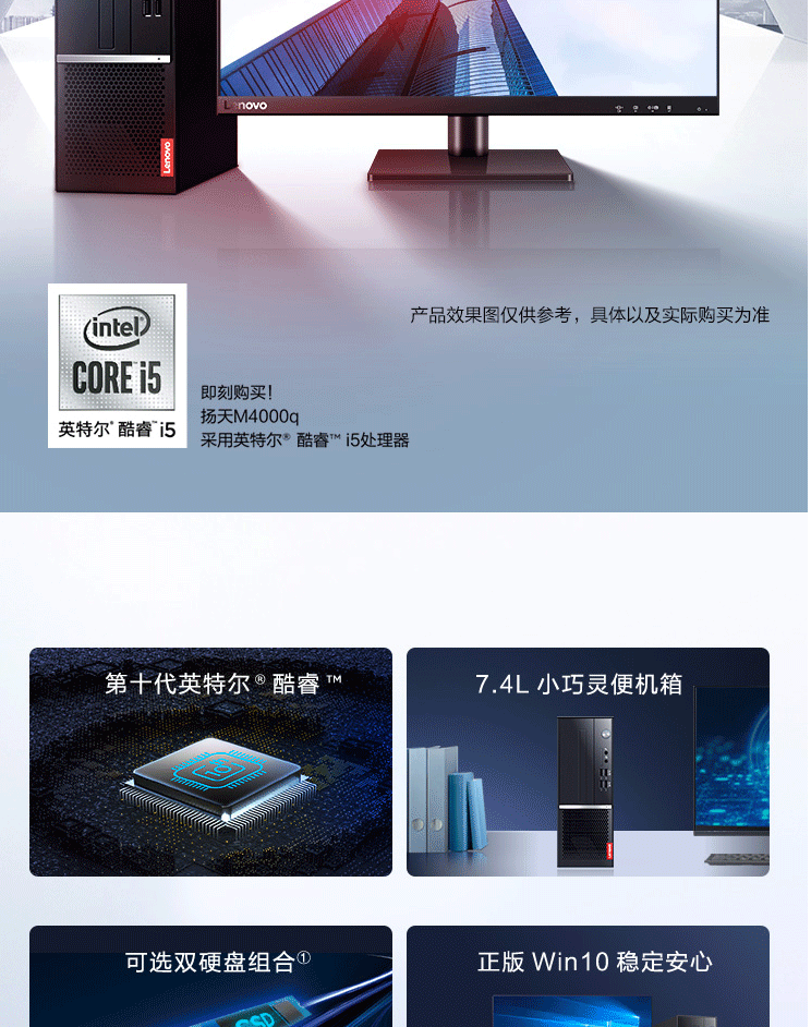 商品名称:联想(Lenovo)扬天M4000q 商用台式机电脑(i5-10400 16G 1T+1T固态)单主机