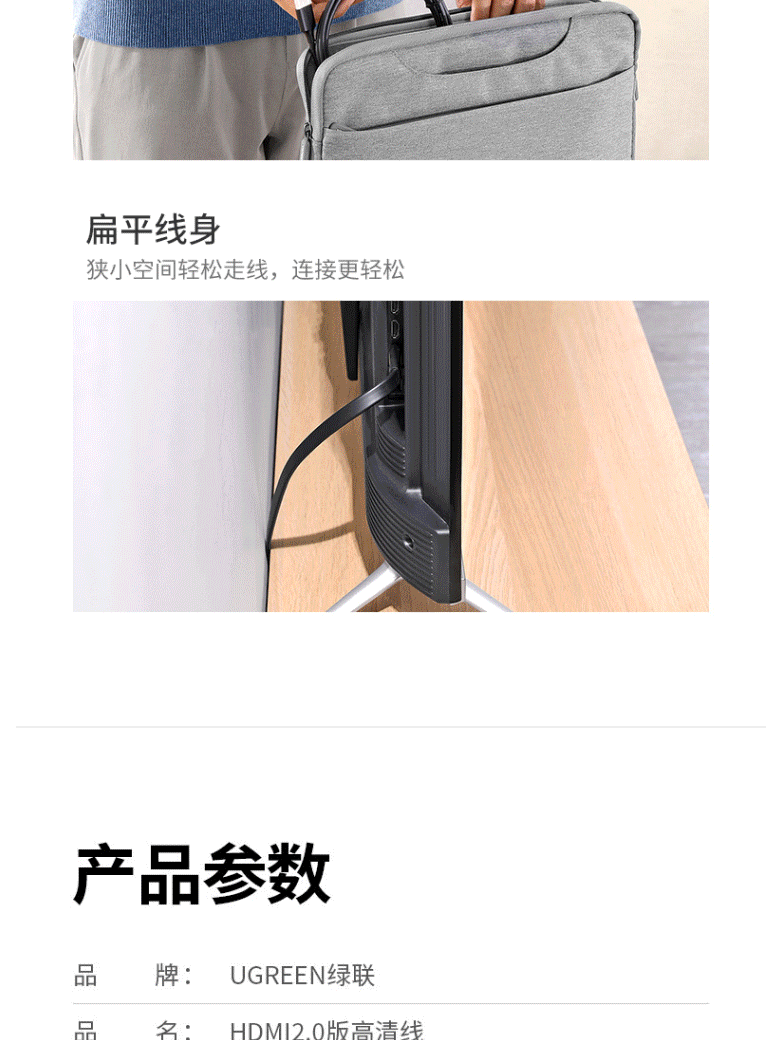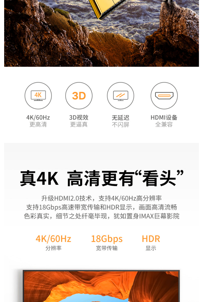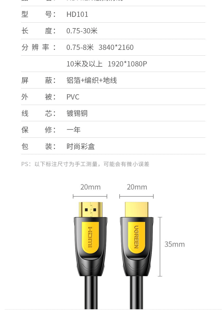 商品名称:绿联 HD101 HDMI线 长线工程级 4K数字高清线3D视频线 3米 10130