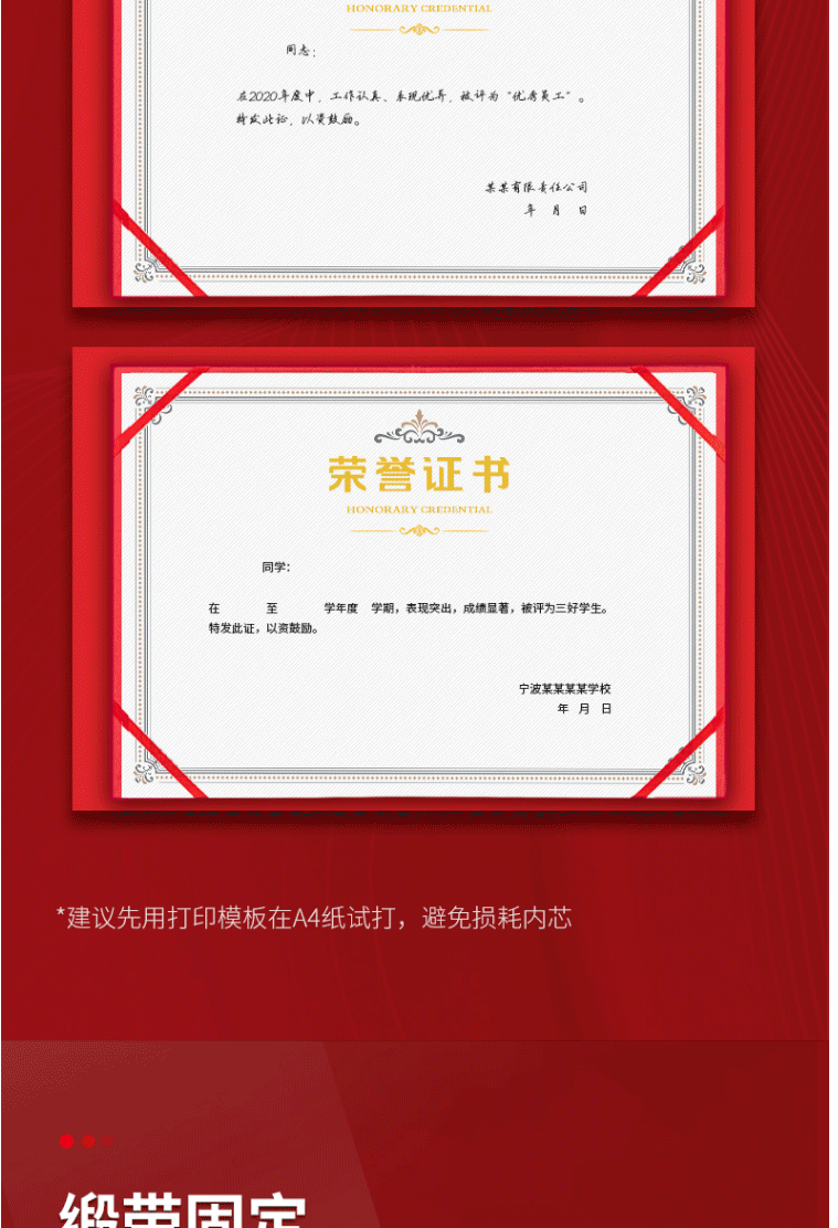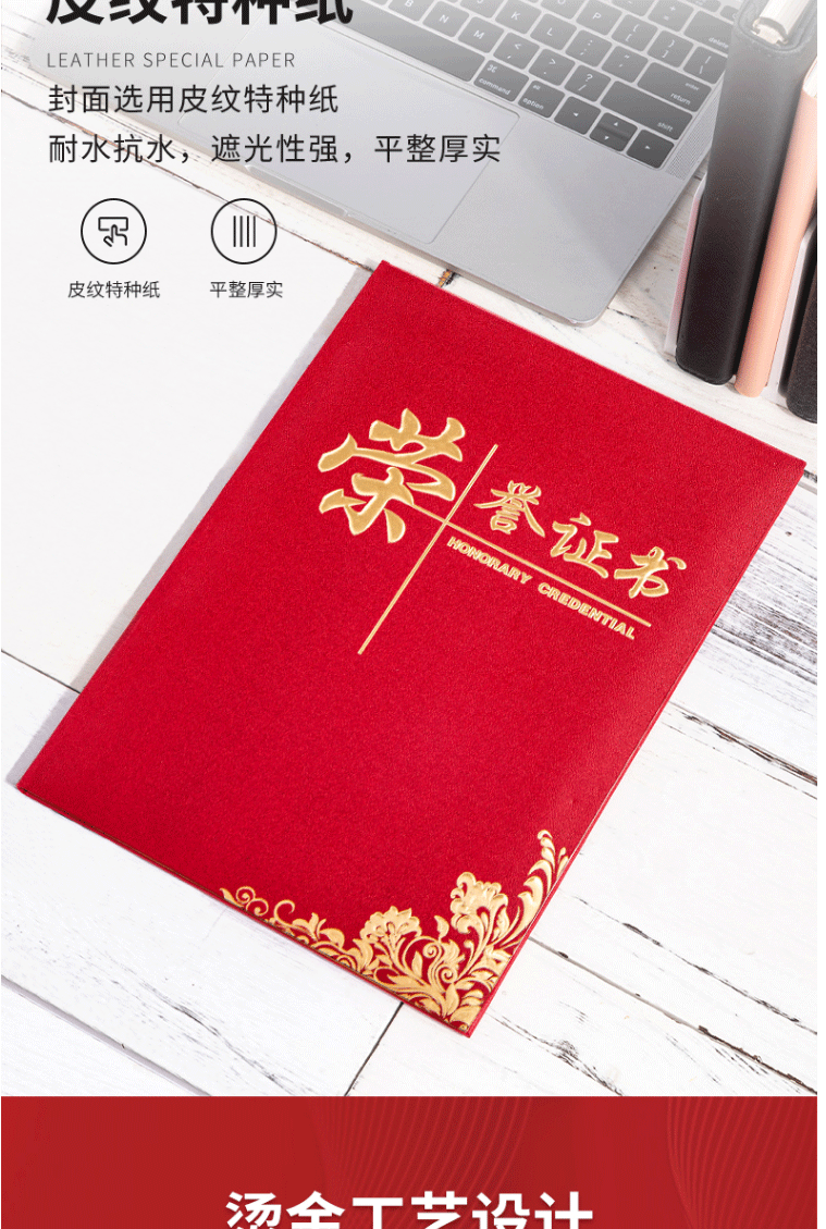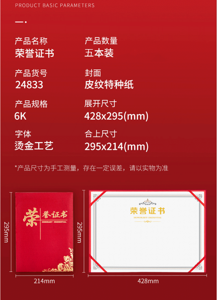 商品名称:得力(deli) 荣誉证书颁奖证书 获奖外壳聘书 带内芯6K 红色 24833
