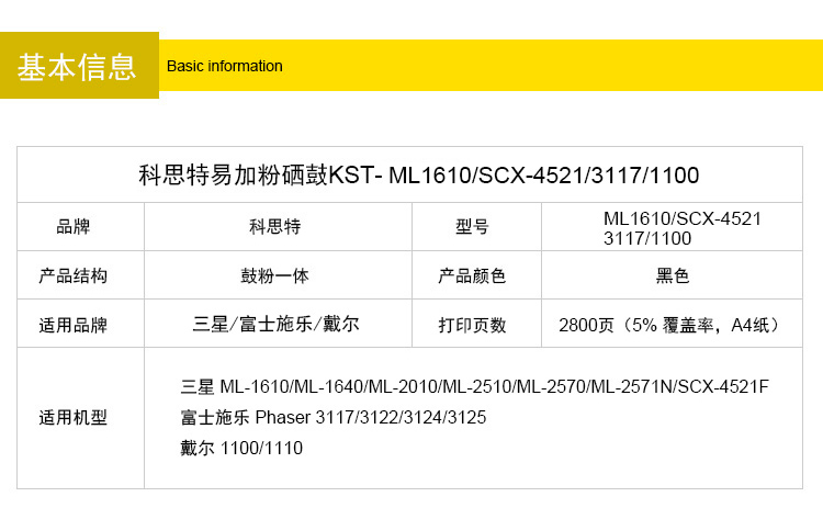 适用机型:Samsung ML-1610/1640/2010/2510/2570/2571N/2510/2570/2571N/2010/2015/SCX 4521F/Xerox Phaser 3117/3122/3124/3125/Dell 1100/1110
