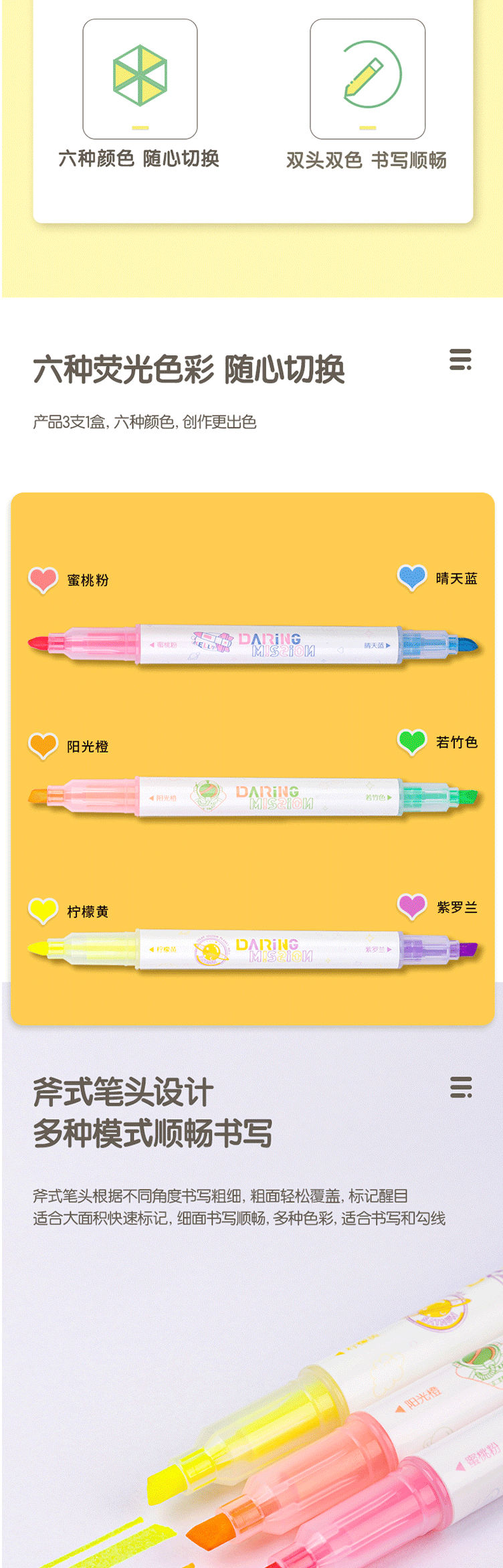 商品名称:得力(deli)双头荧光笔 S749 3支6色