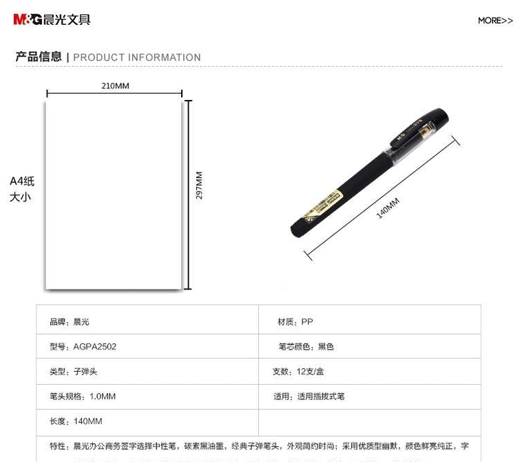 商品名称:晨光(M&G) AGPA2502 晨光陶瓷球珠中性笔金黑 1.0签字笔 12支/盒