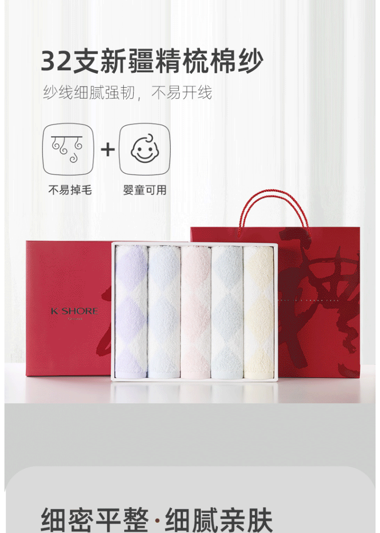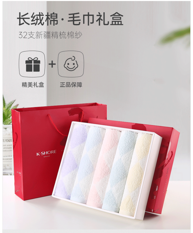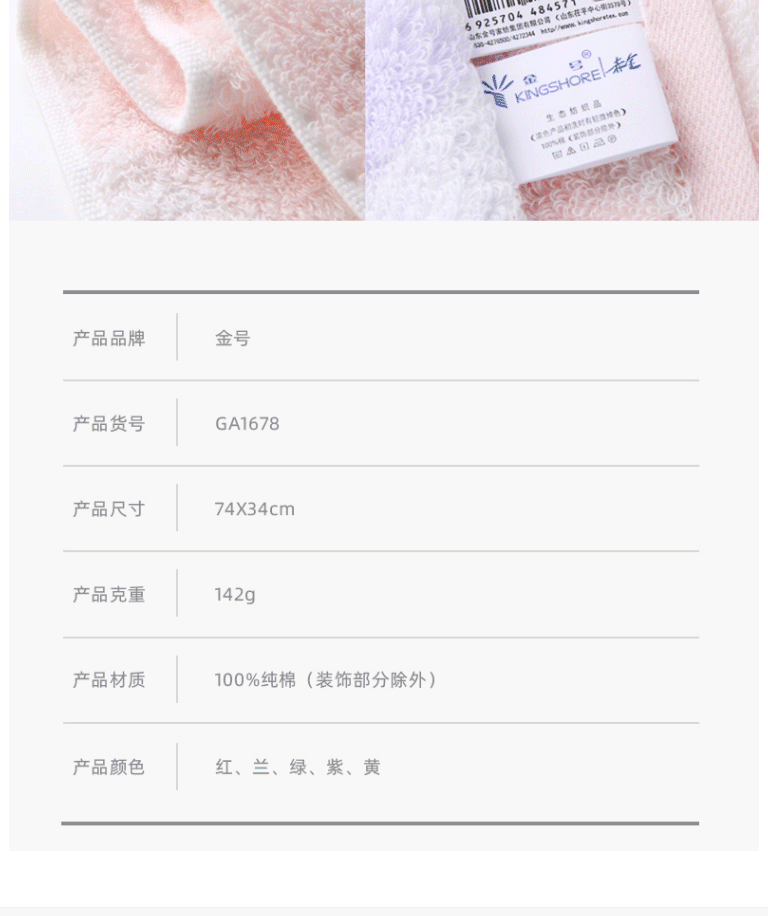商品名称:金号毛巾 74*34cm纯棉吸水新疆棉 毛巾礼盒5条装 A类洗脸面巾