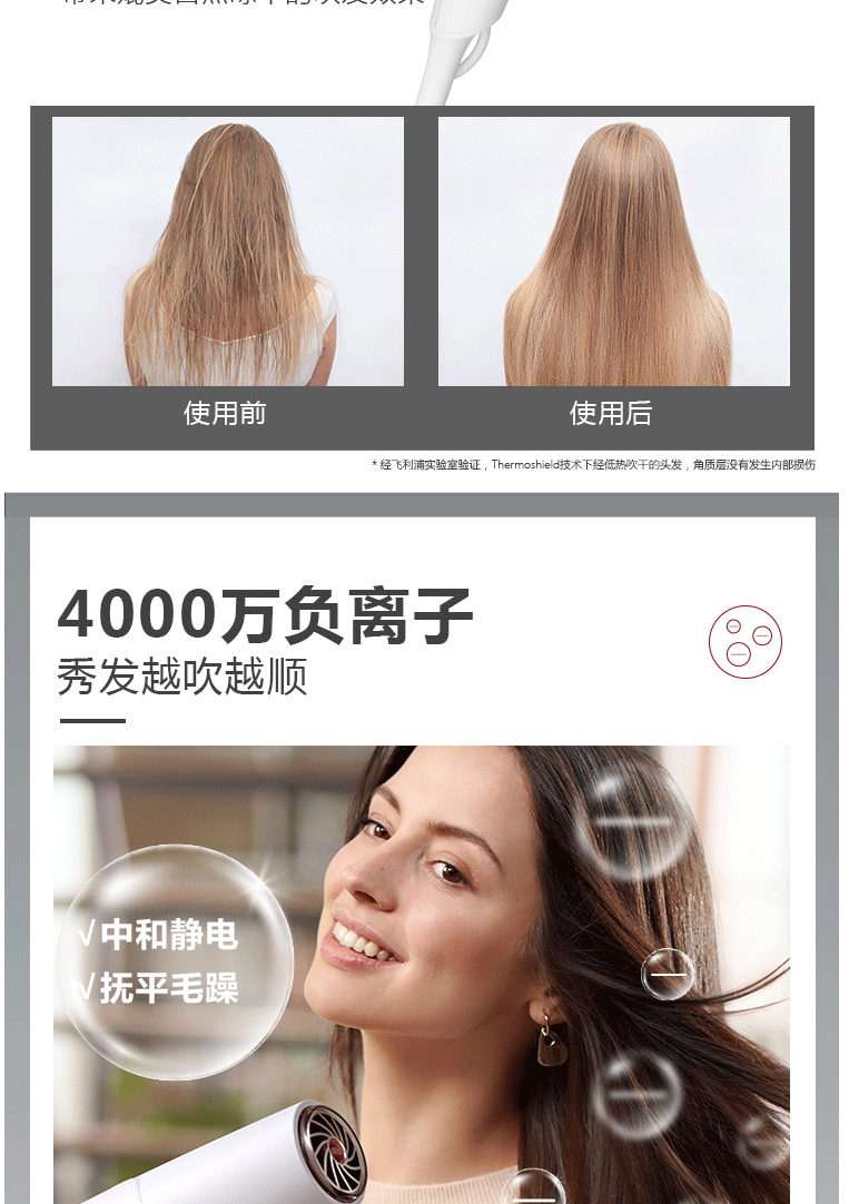 商品名称:飞利浦(PHILIPS)吹风机 电吹风 大功率 负离子吹风筒恒温护发 速干BHD500/05