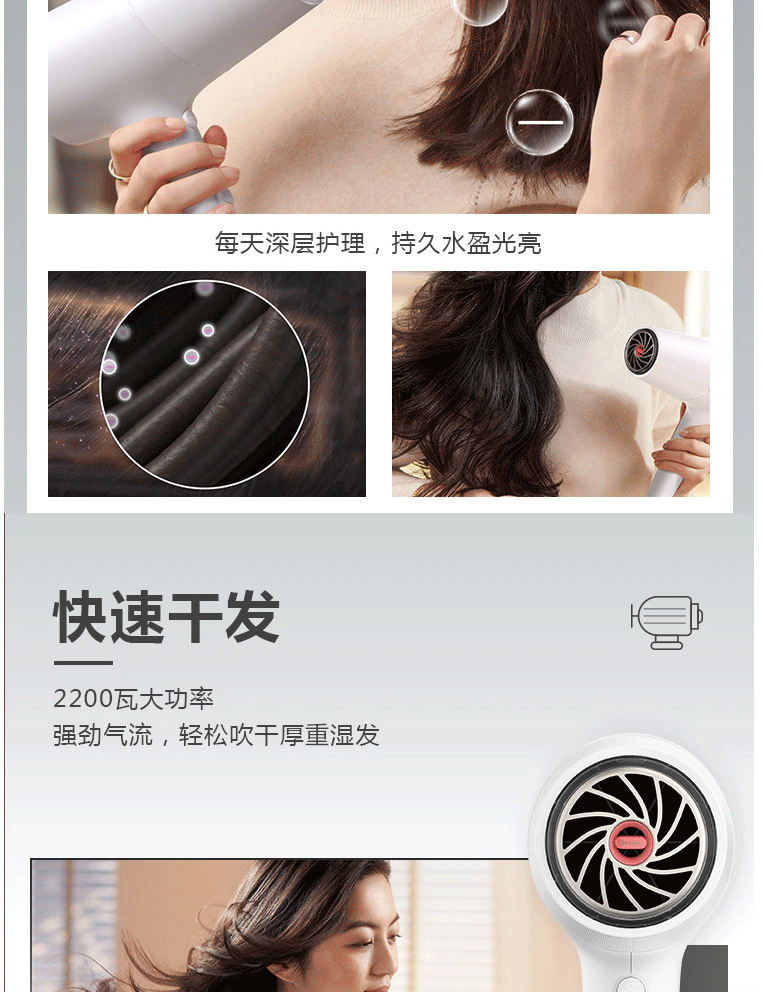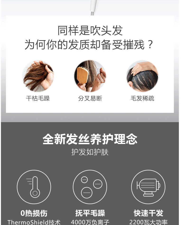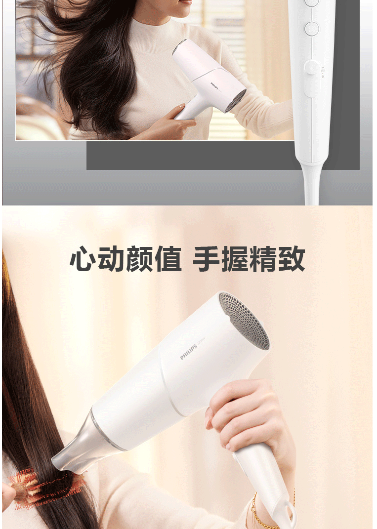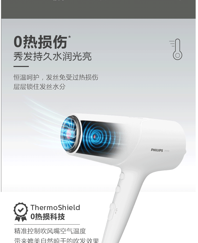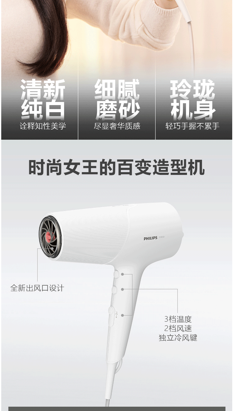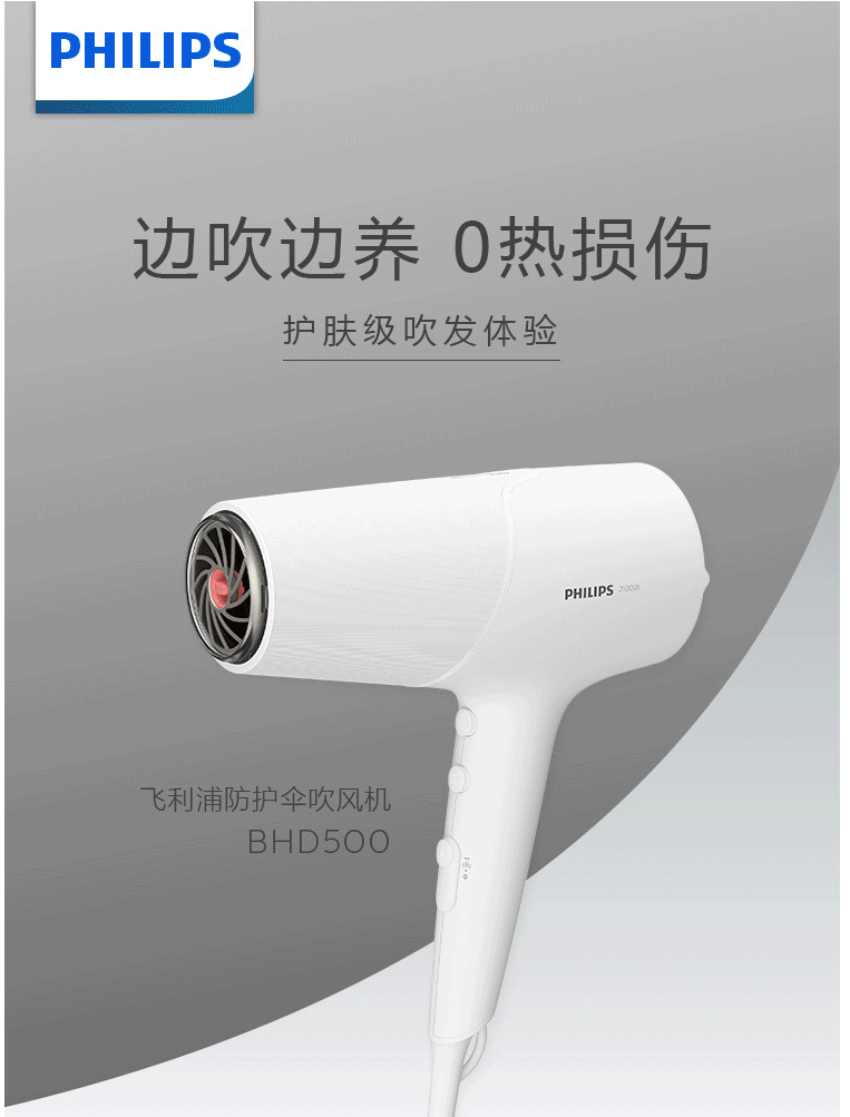 飞利浦(PHILIPS)吹风机 电吹风 大功率 负离子吹风筒恒温护发 速干BHD500/05