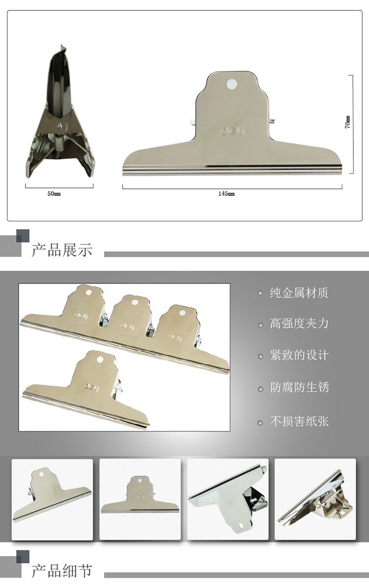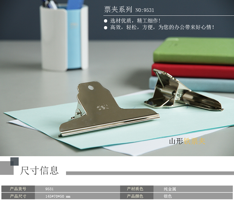 商品名称:得力(deli)9531 145mm山形铁票夹(个)