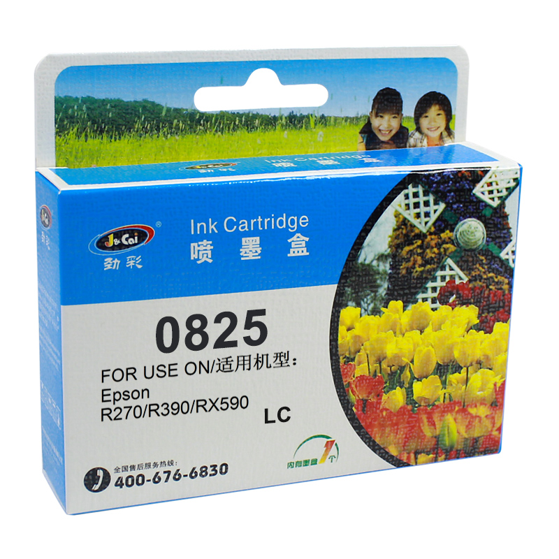 劲彩 T0825墨盒 适用爱普生 R270 390 RX590 610 720 浅蓝