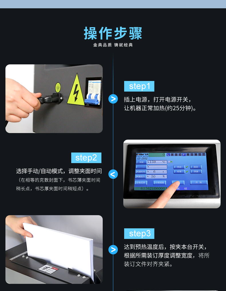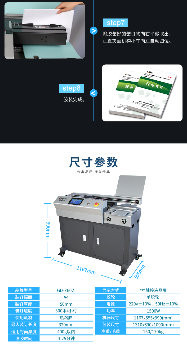 商品名称:金典(GOLDEN)GD-Z602无线全自动柜式胶装机A4热熔标书装订机招标报告装订