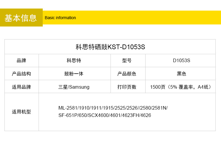 商品名称:科思特D1053硒鼓 适用三星 ML2581 1910 SF650 SCX4601 4623 专业版