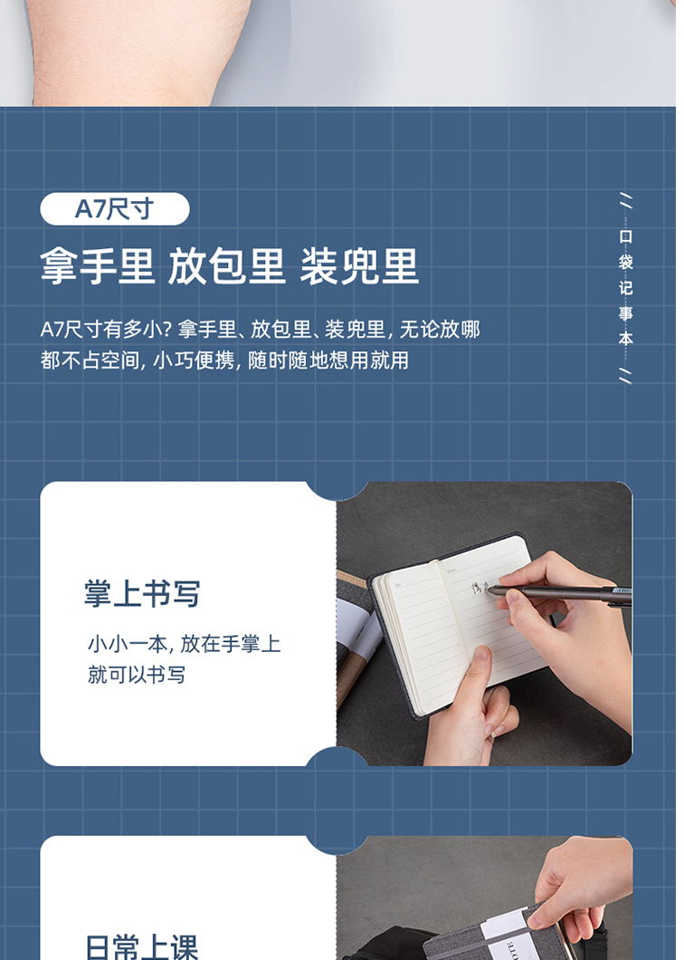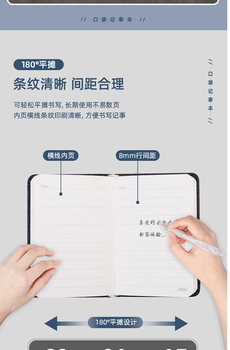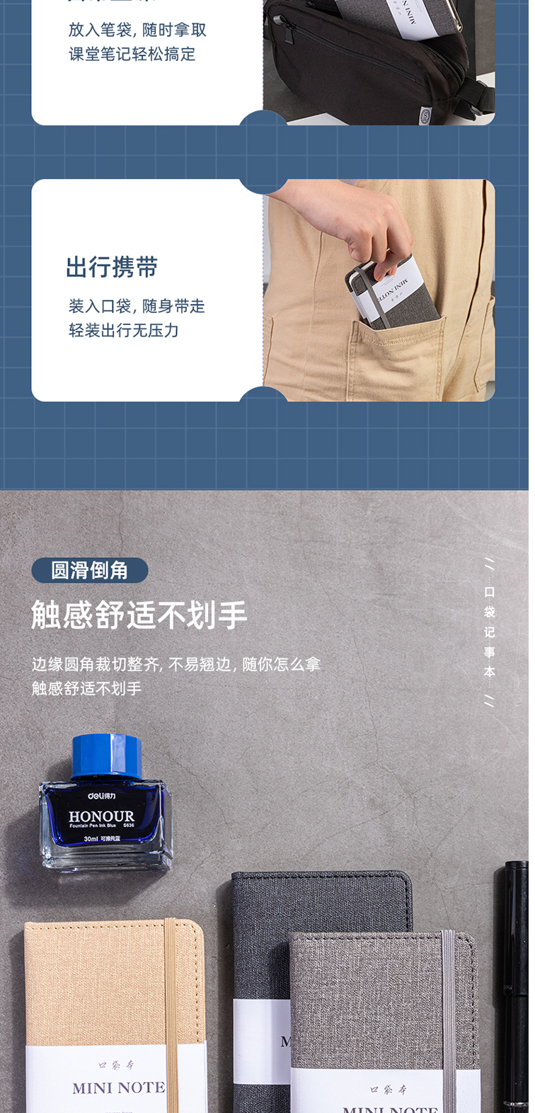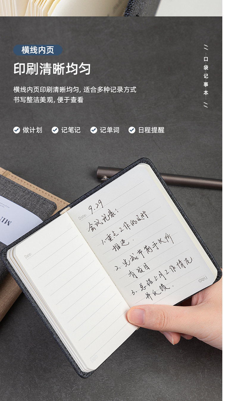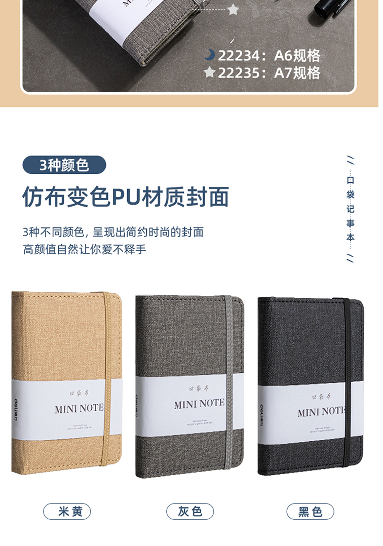 商品名称:得力(deli)A7/96张便携笔记本子 口袋本迷你手账本 22235黑色