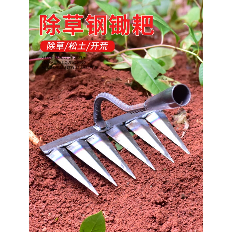 六齿耙子 除草钢耙 六尖齿锄+木柄