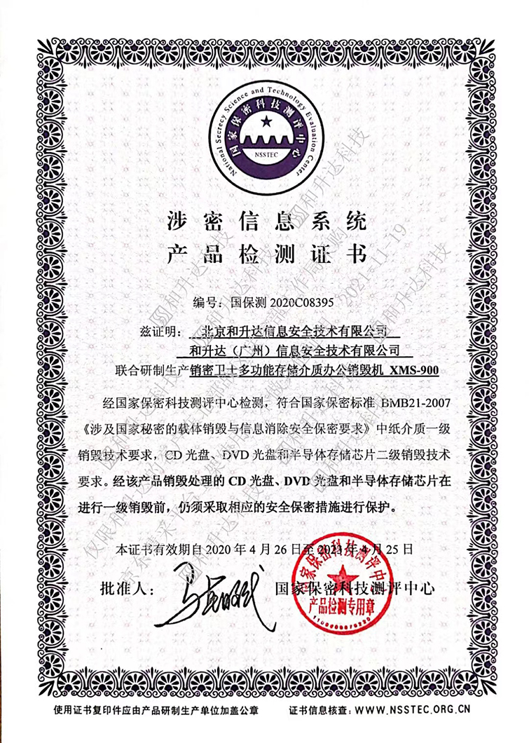 商品名称:和升达销密卫士XMS-900高保密办公销毁机(5合1型)