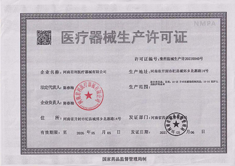 生产许可证:豫药监械生产许20210040号