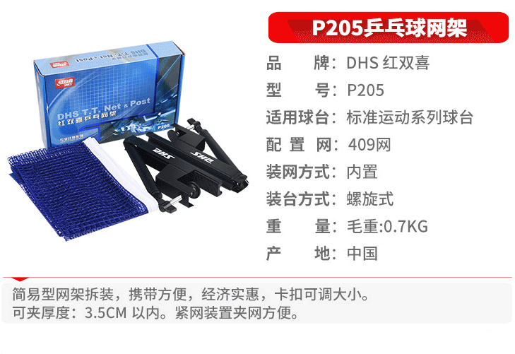 商品名称:红双喜 乒乓球网架含网P205 专业比赛乒乓球桌网架套装