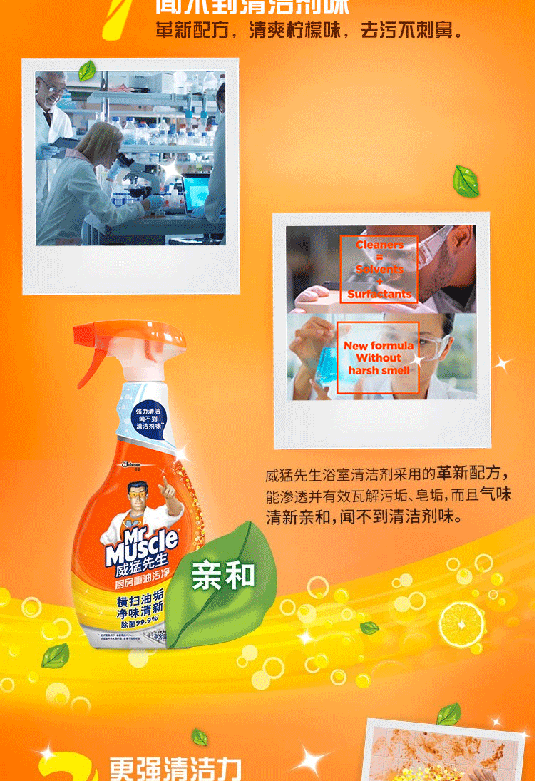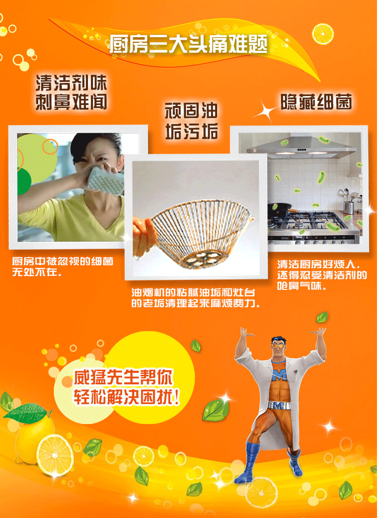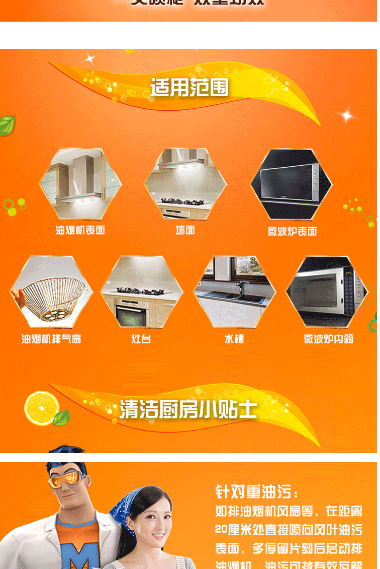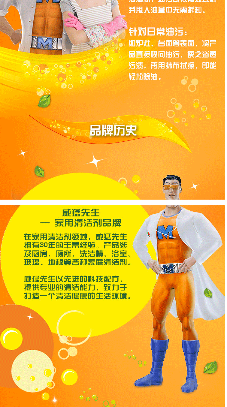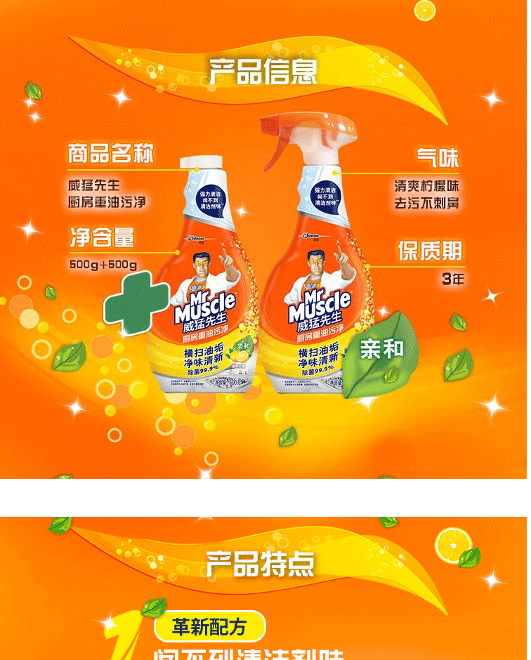 商品名称:威猛先生(Mr Muscle)厨房重油污净双包装柠檬500g+500g(48对)
