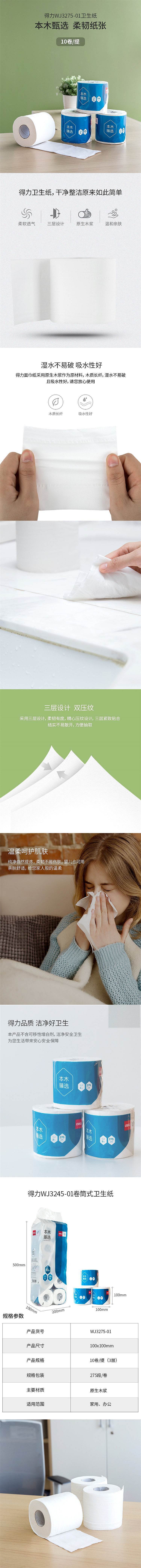 商品名称:得力WJ3275-01卷筒式卫生纸(白)(10卷/提)