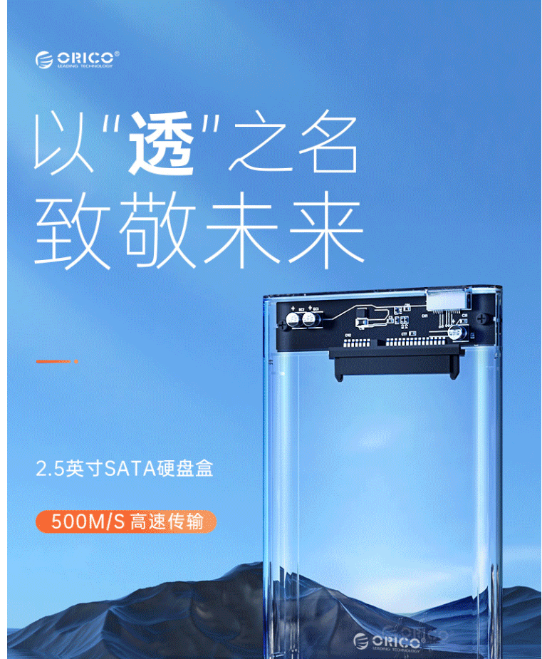 奥睿科(ORICO)移动硬盘盒2.5英寸USB3.0 SATA串口 全透明2139U3