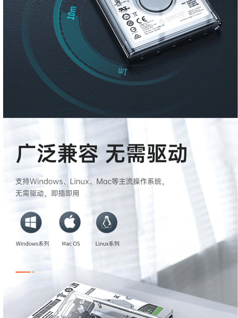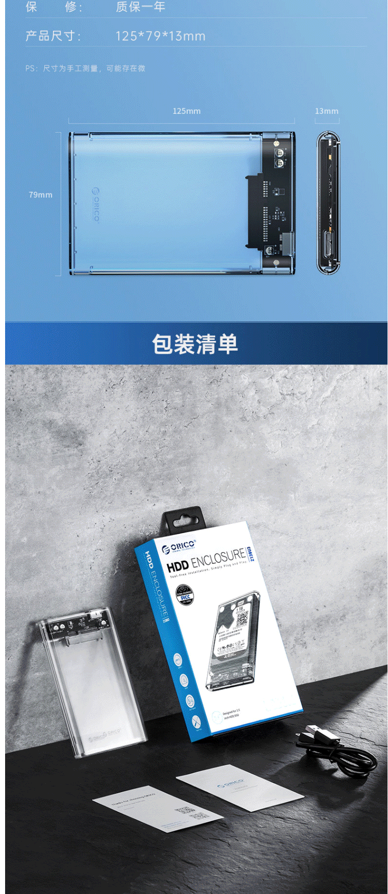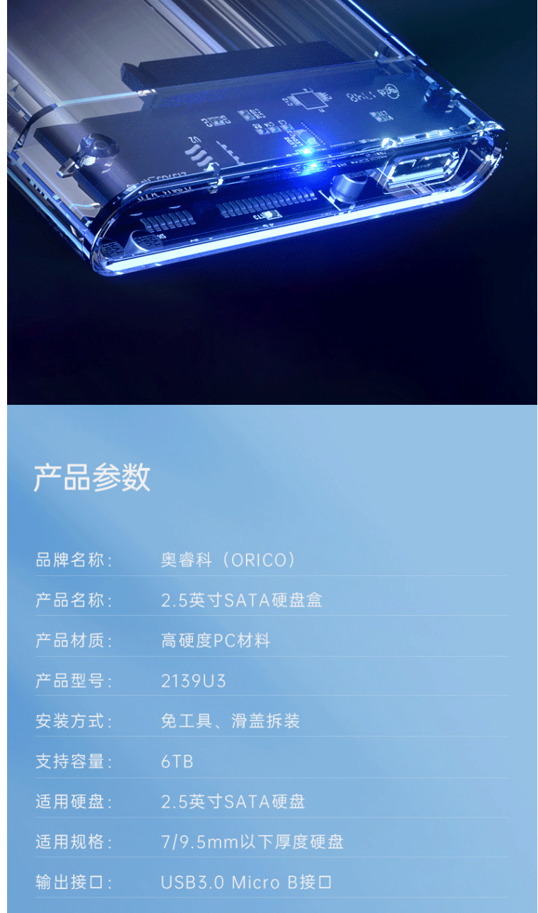 商品名称:奥睿科(ORICO)移动硬盘盒2.5英寸USB3.0 SATA串口 全透明2139U3