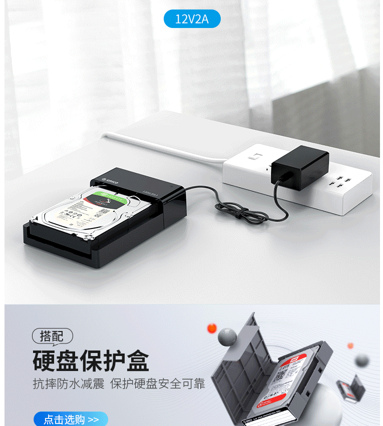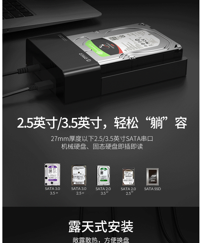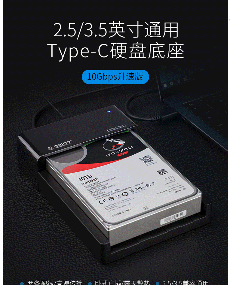 商品名称:奥睿科(ORICO)移动硬盘盒底座Type-C接口2.5/3.5英寸SATA串口SSD固态机械通用外置盒10Gbps 6518C3-G2