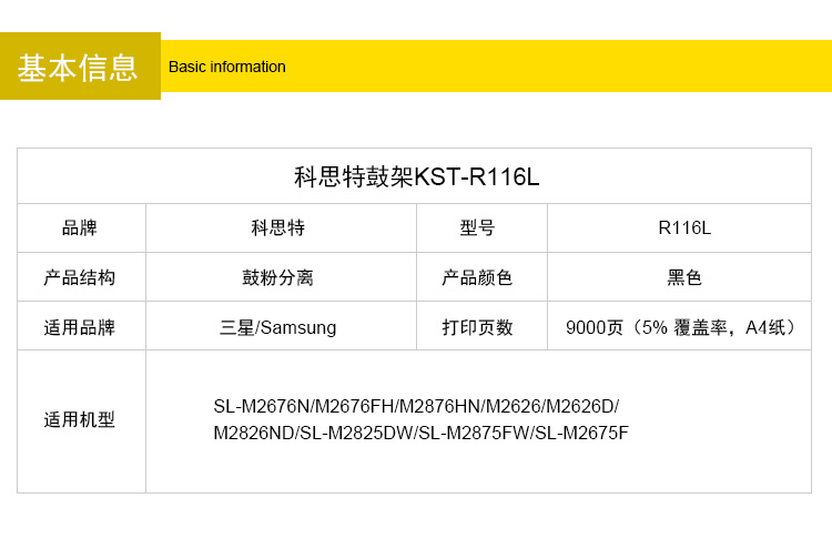 商品名称:科思特R116L鼓架 适用三星 SL-M2675F M2676 M2825DW M2826ND 专业版