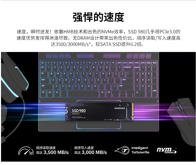 三星(SAMSUNG)500GB SSD固态硬盘 M.2接口(NVMe协议) 980