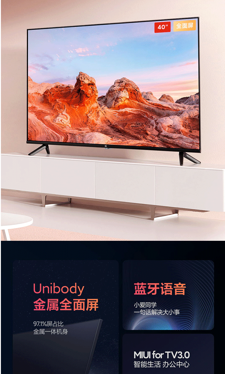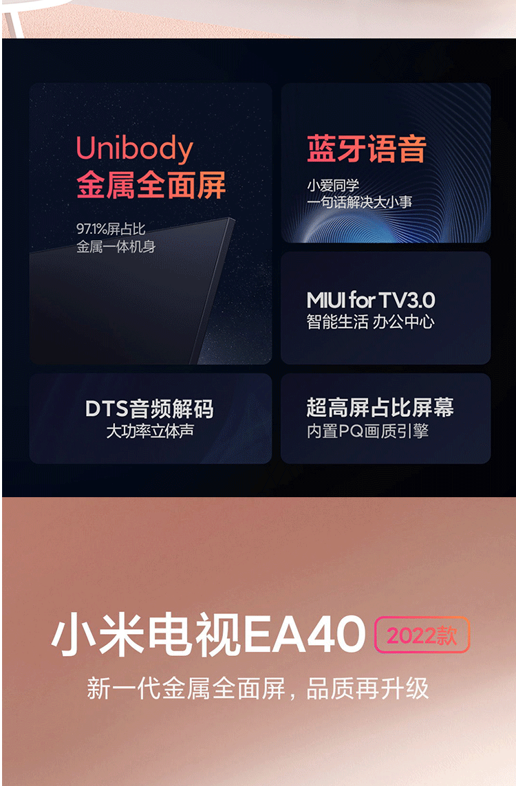 商品名称:小米电视EA40 2022款 40英寸 金属全面屏 蓝牙语音 全高清 人工智能平板教育电视机L40M7-EA