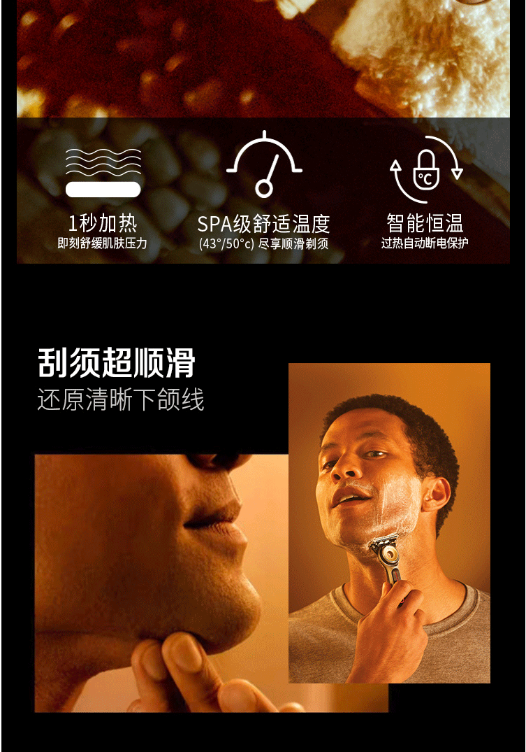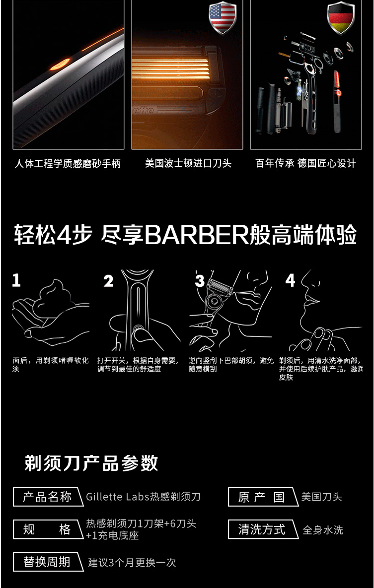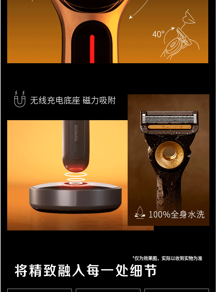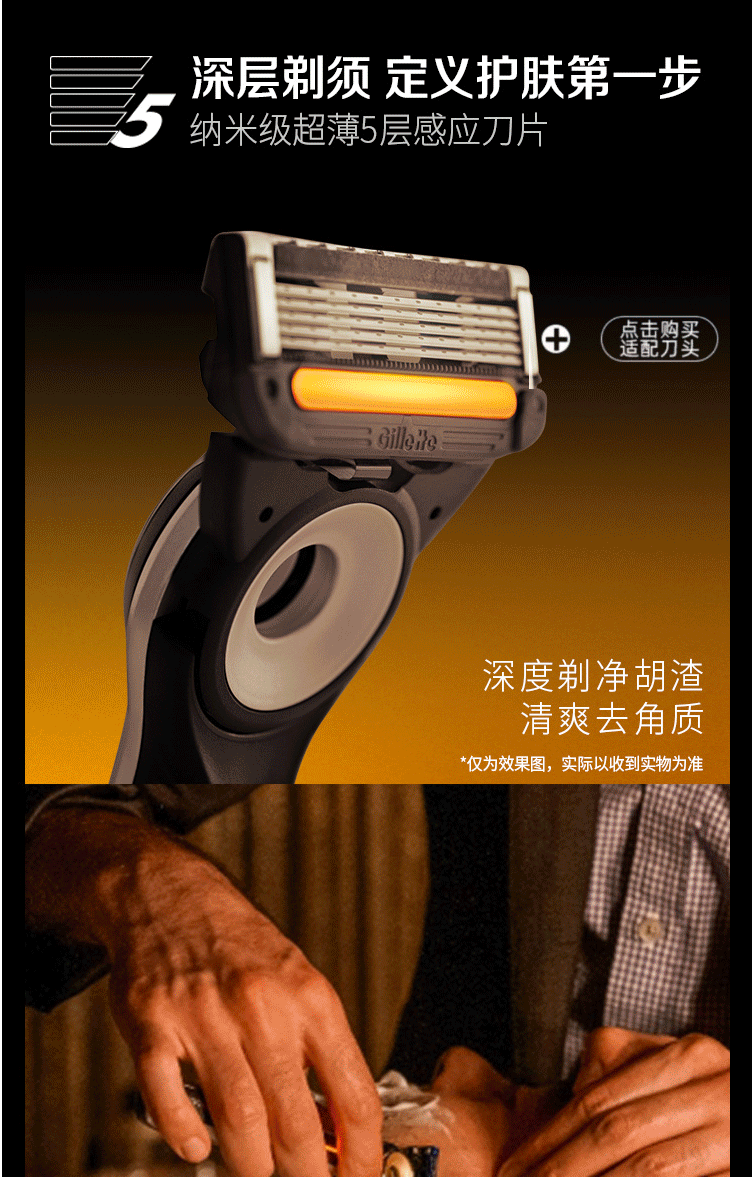 商品名称:吉列(Gillette) 热感刮胡刀 手动剃须刀 1刀架6刀头+充电底座