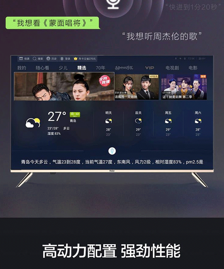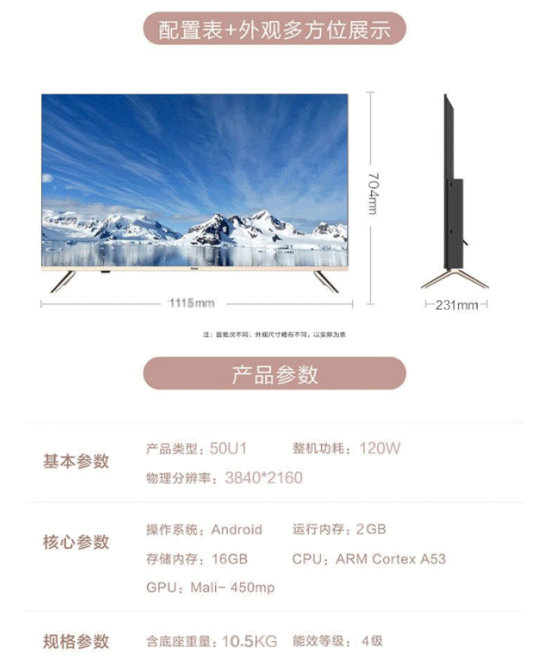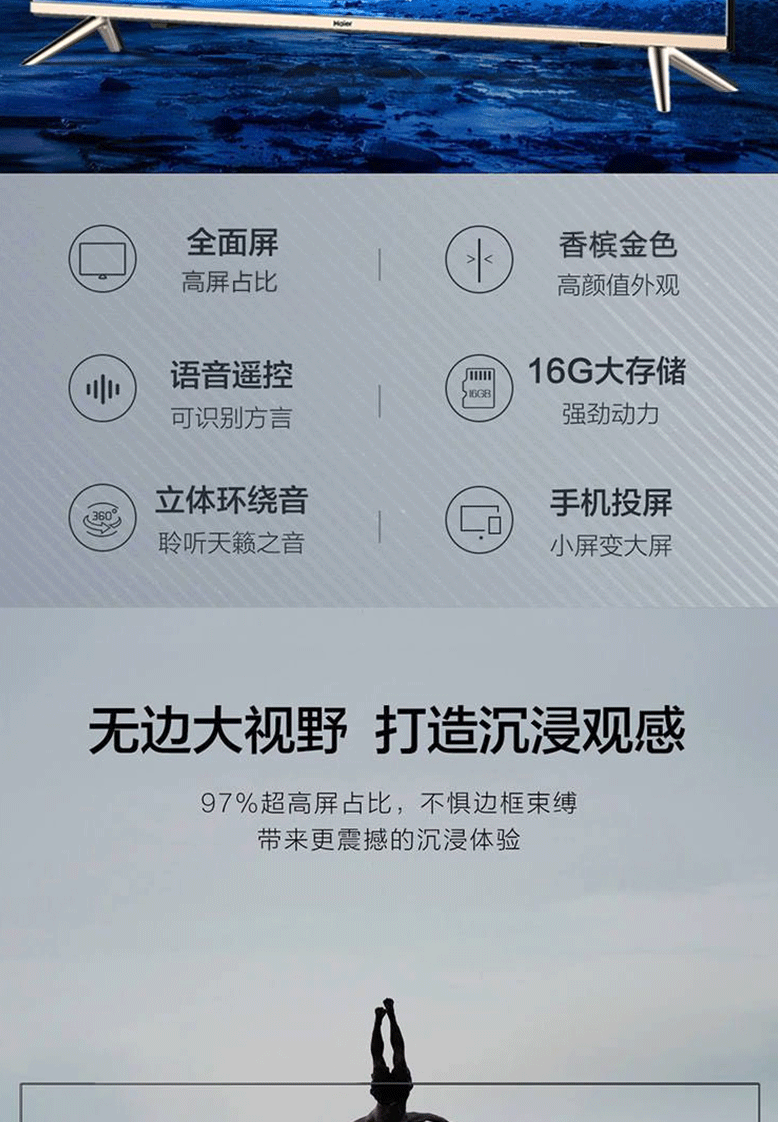 商品名称:海尔(Haier)电视 WIFI智能投屏高清网络液晶平板电视机 50寸金色边框4K超高清全面屏 50U1