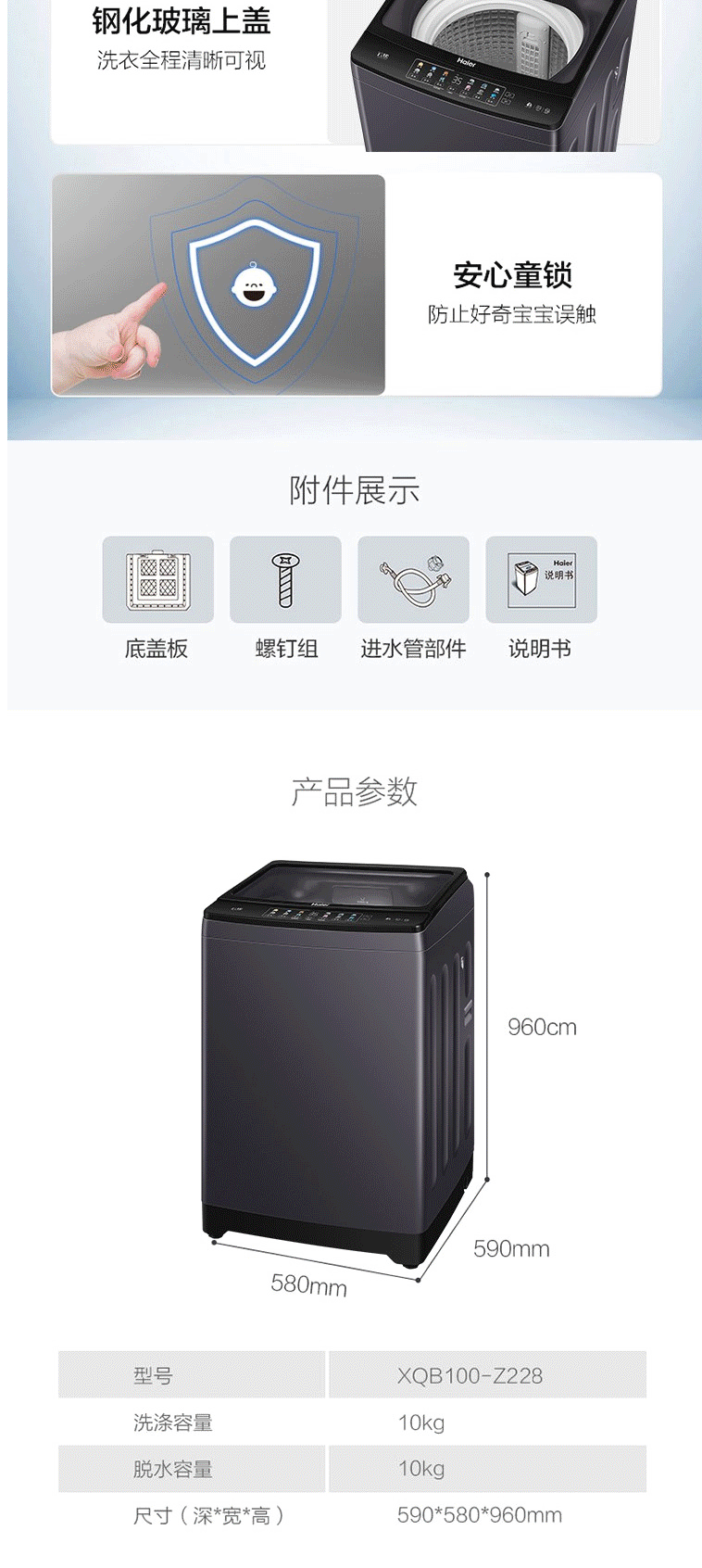 商品名称:海尔(Haier)云熙 海尔10公斤全自动洗衣机大容量 XQB100-Z228