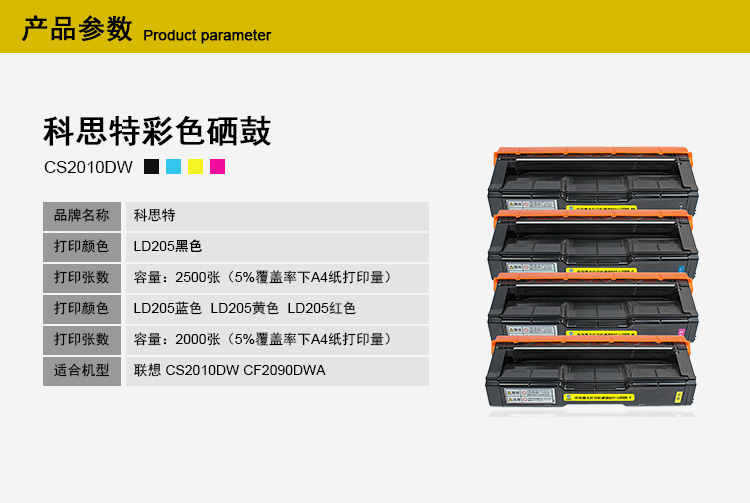 商品名称:科思特LD205硒鼓 适用联想LENOVO CS2010DW CF2090DWA 黄色 专业版