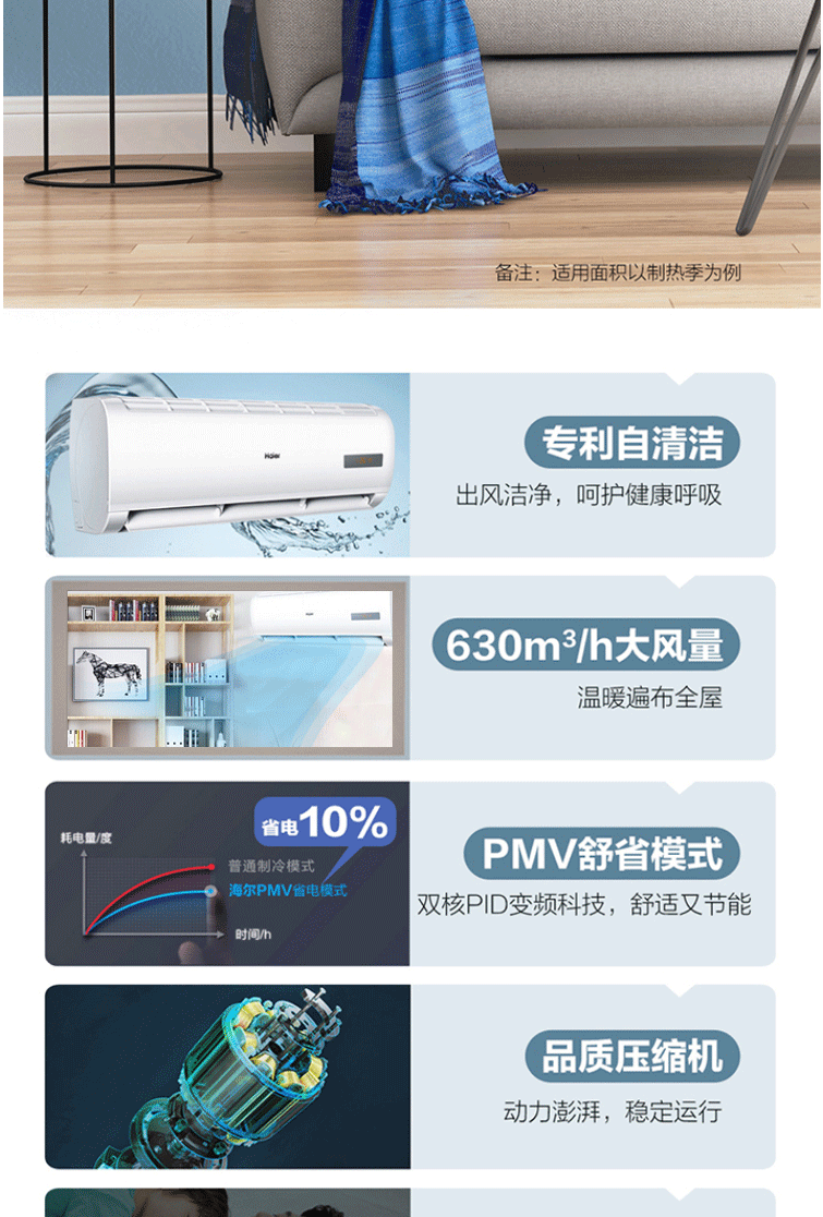 商品名称:海尔(Haier)1匹智能变频冷暖空调 壁挂式空调挂机 KFR-26GW/20MCA83