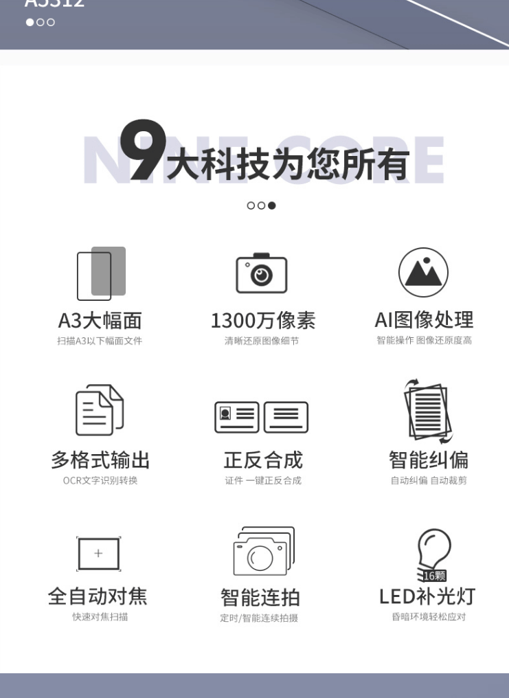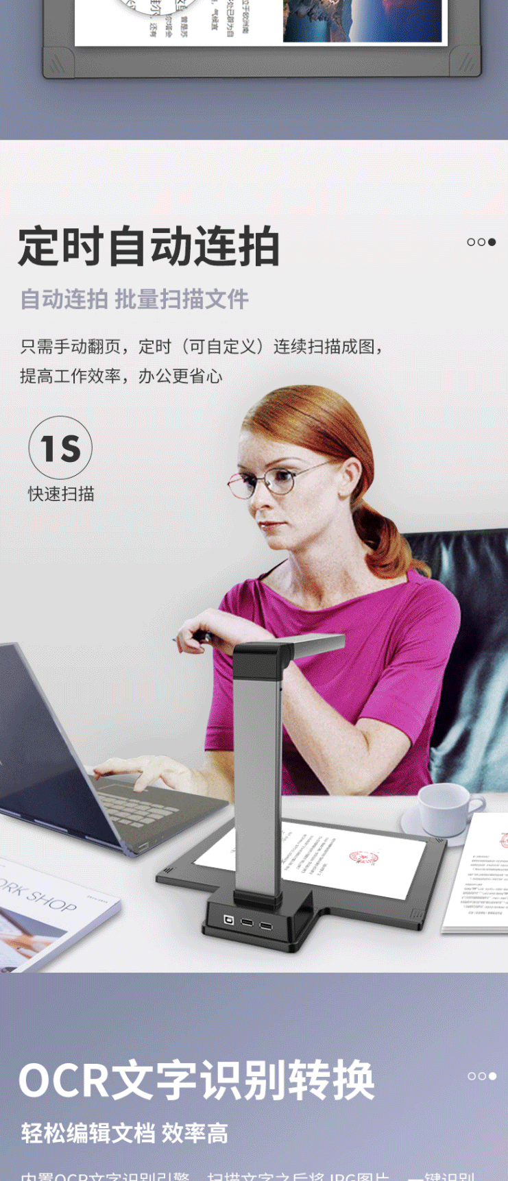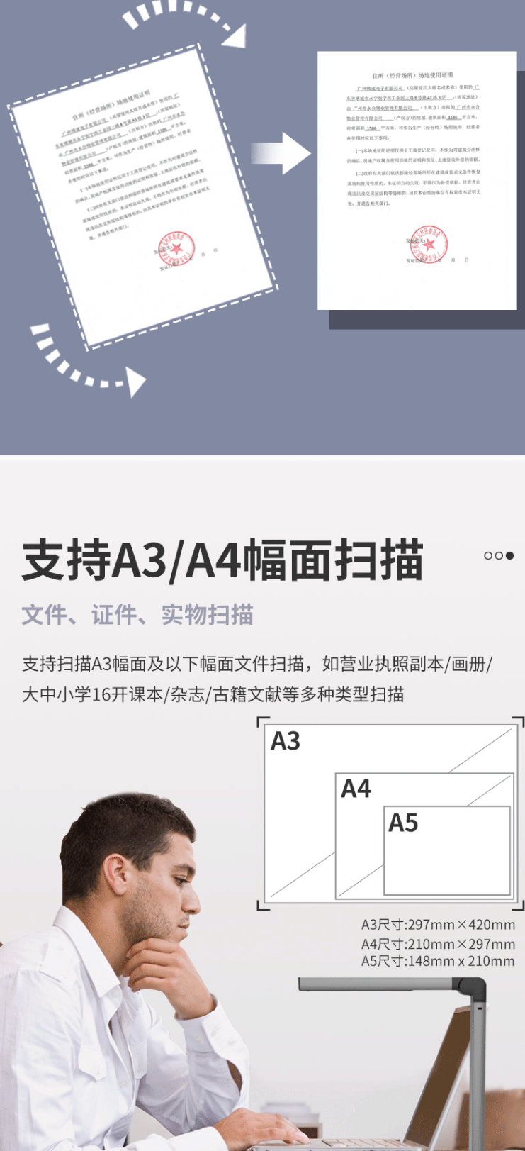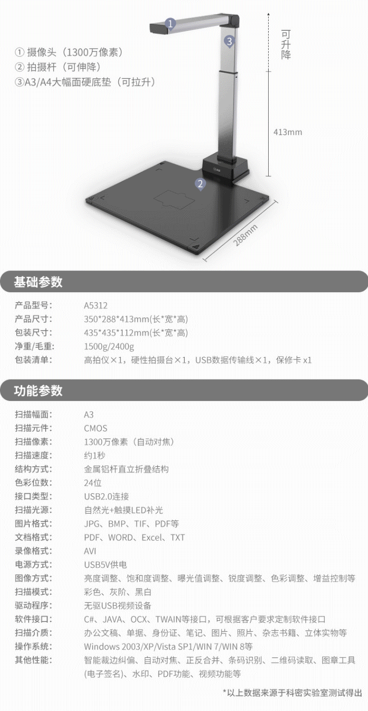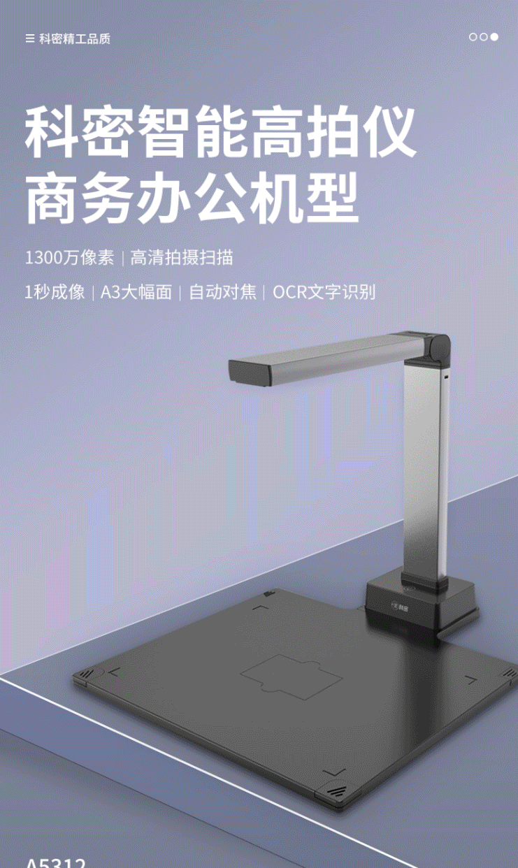 科密 A5312 高拍仪 1300万像素扫描仪 A3A4文件资料照片编辑优化 OCR图文识别 信创统信麒麟国产系统二次开发