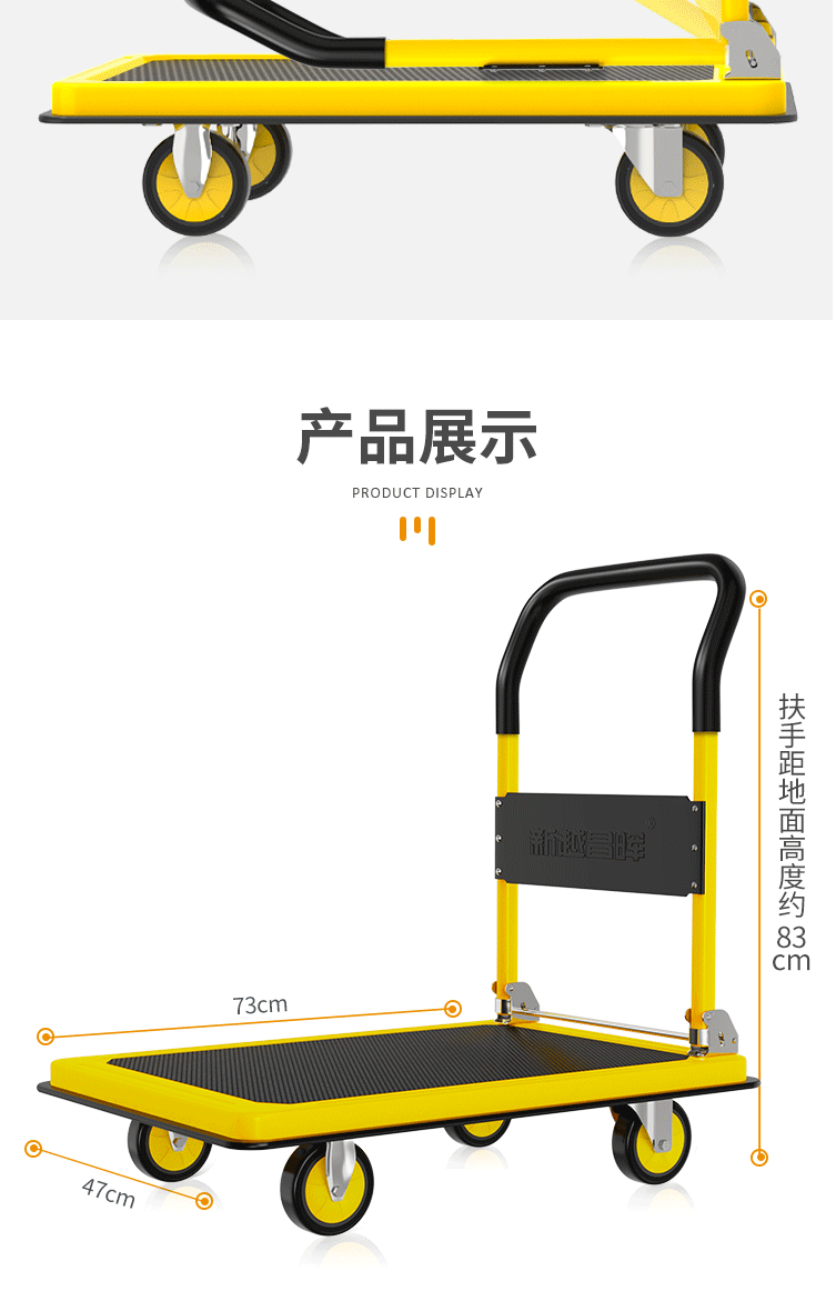 商品名称:平板车 折叠手推车 搬运车手拉车 轻音钢板车 47*73cm承重约500斤