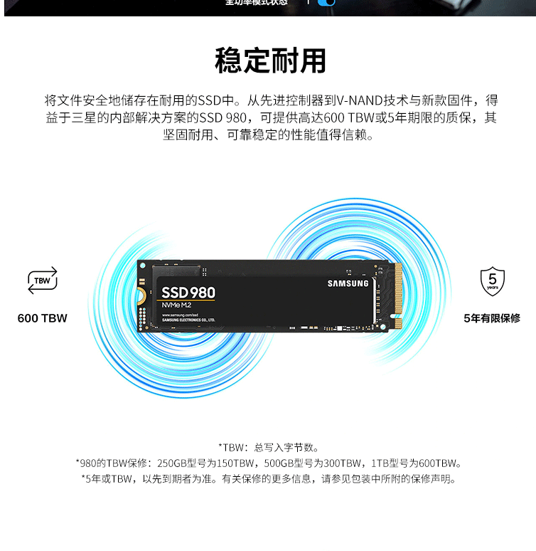 三星(SAMSUNG)1TB SSD固态硬盘 M.2接口(NVMe协议) 980