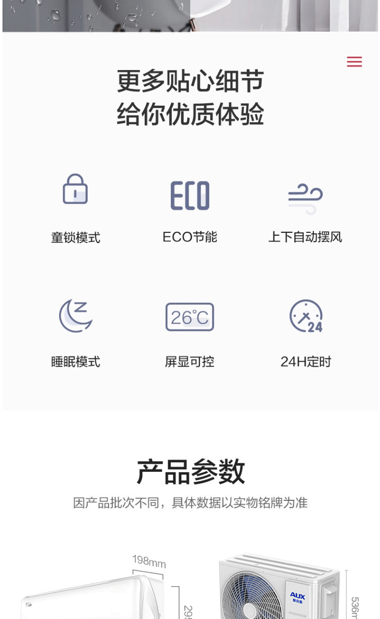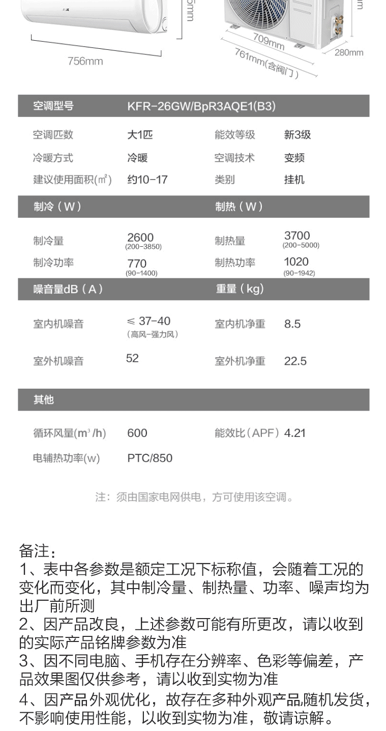 商品名称:奥克斯 (AUX) 大1匹 新3级能效 壁挂式变频空调KFR-26GW/BpR3AQE1(B3))(含安装)