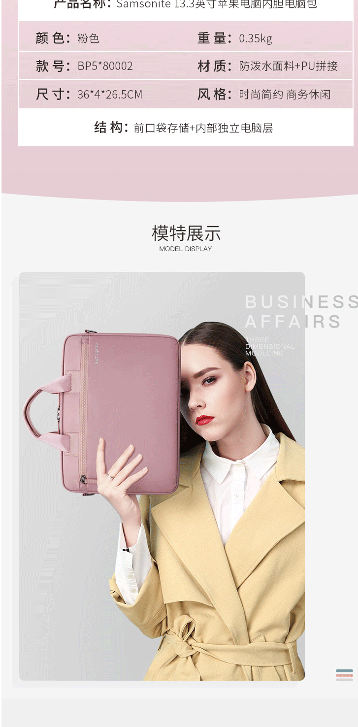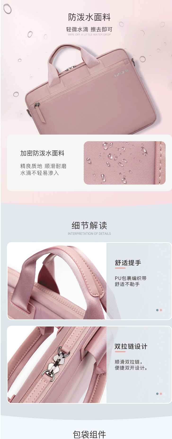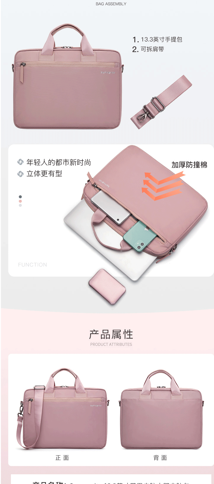 商品名称:新秀丽电脑包手提包女士背包 samsonite苹果微软笔记本电脑内胆包13.3英寸轻薄 BP5*80002 樱花粉
