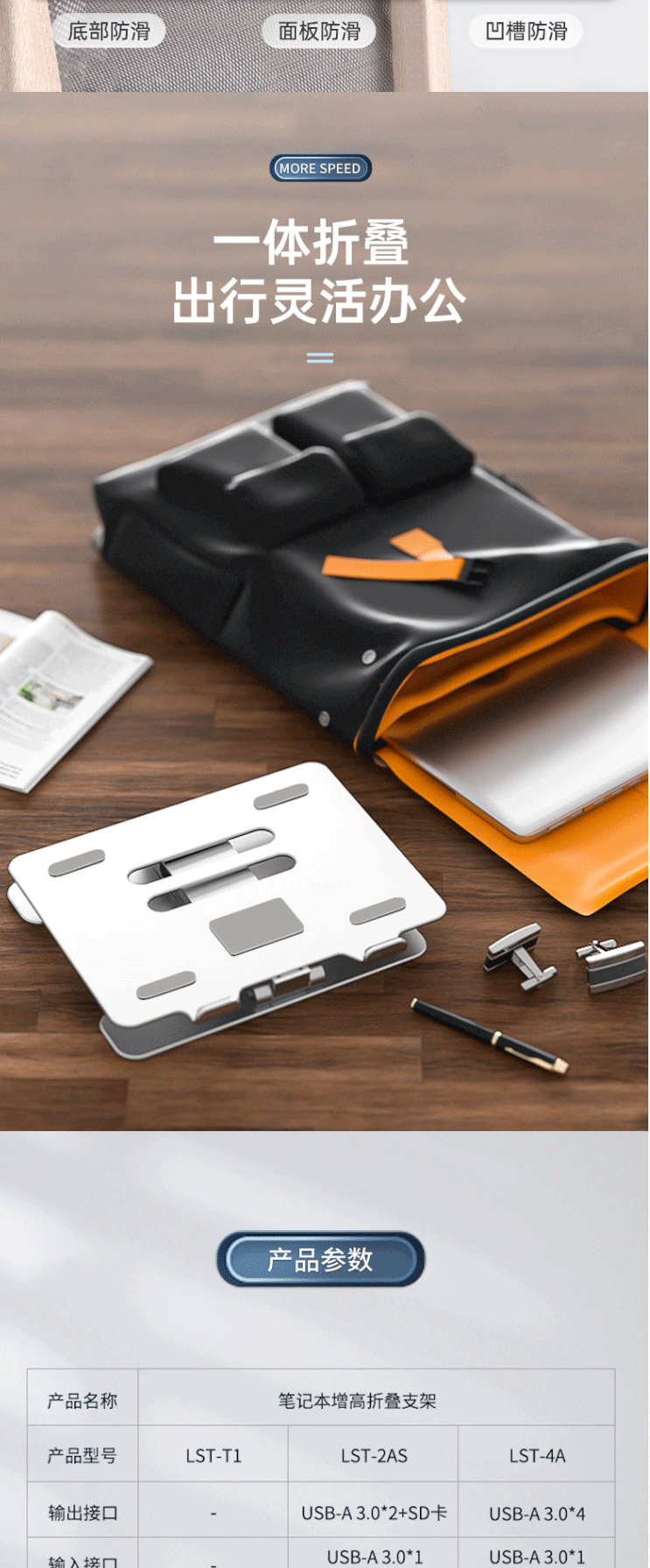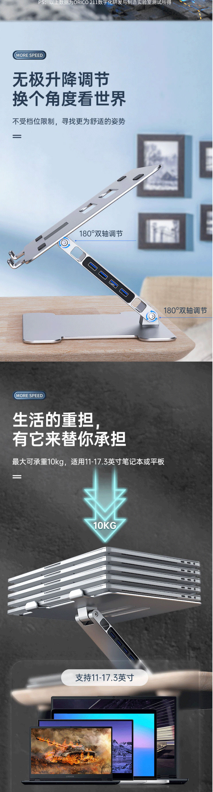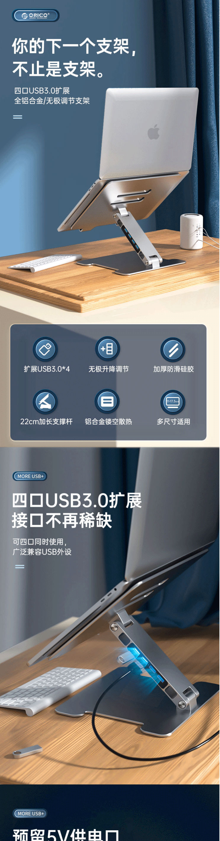 商品名称:奥睿科(ORICO)铝合金笔记本支架扩展坞拓展坞USB3.0 HUB 分线集线器电脑可调升降散热器折叠便携LST-4A