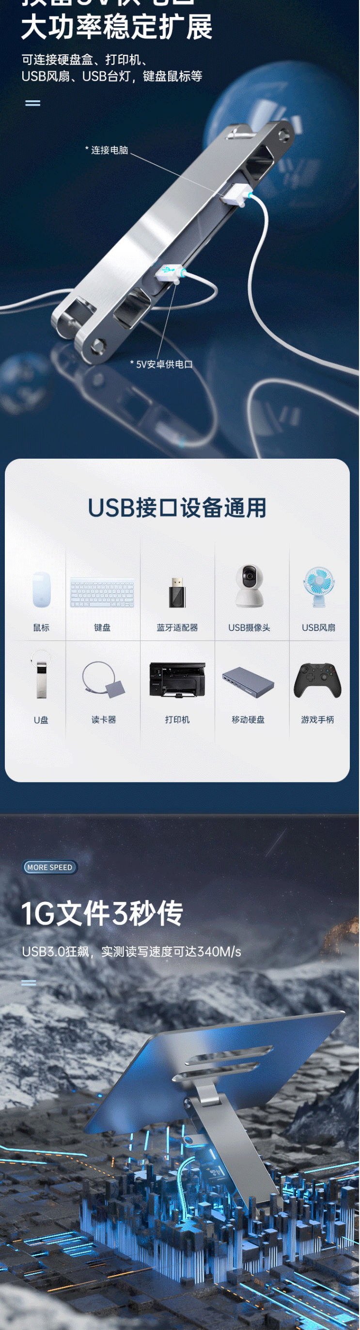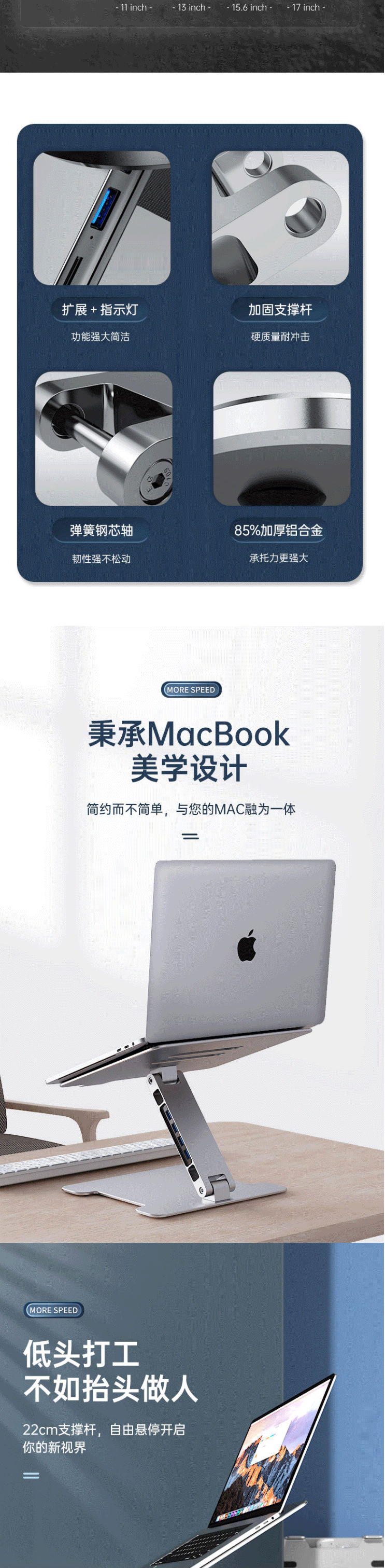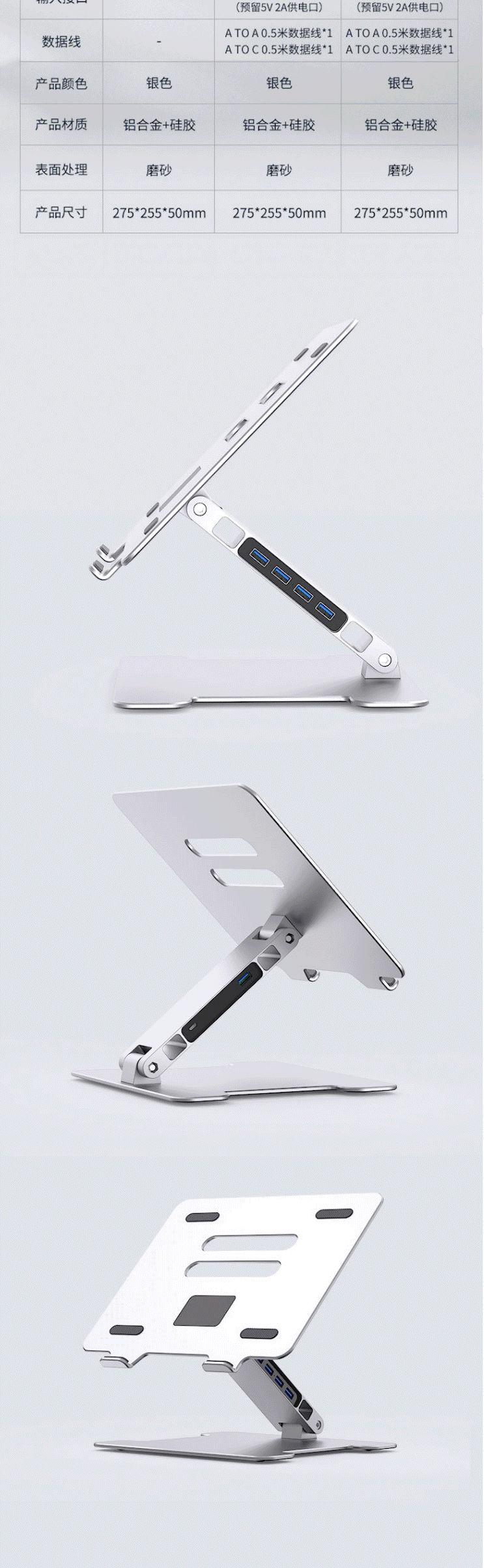 商品名称:奥睿科(ORICO)铝合金笔记本支架扩展坞拓展坞USB3.0 HUB 分线集线器电脑可调升降散热器折叠便携LST-4A